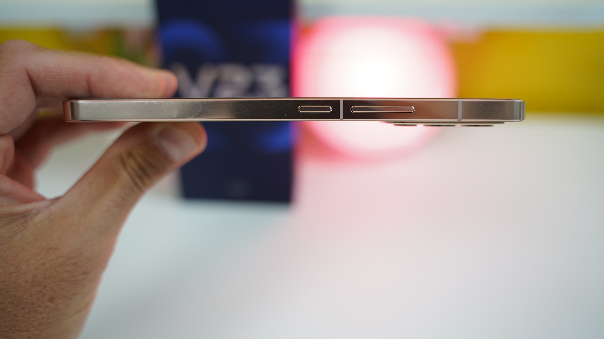 Παίρνοντας το vivo V23 στα χέρια, έχουμε να κάνουμε με μια πραγματικά καλοφτιαγμένη συσκευή. Η ποιότητα κατασκευής είναι εξαιρετική, με μεταλλικό σασί και γυάλινη πλάτη. Η σχεδίαση θυμίζει iPhone είναι η αλήθεια, με τις στρογγυλεμένες γωνίες και τις επίπεδες πλευρές. Στην οθόνη υπάρχει προσαρμοσμένη μια ζελατίνα προστασίας. Το vivo V23 είναι σχετικά μικρό στο μέγεθος και αρκετά ελαφρύ, κάτι που οφείλεται στην οθόνη 6,44’’, ανάλυσης Full HD+ και τεχνολοίας Amoled, η οποία τρέχει στα 90Hz. Όσον αφορά στην οθόνη, μετρήσαμε μια μέγιστη φωτεινότητα της τάξης των 345nits σε κανονικές συνθήκες και 490 nits σε κατάσταση αυτόματης ενεργοποίησης της μέγιστης με πολύ έντονο εξωτερικό φωτισμό, τιμές σχετικά καλέ αλλά όχι κάτι το εντυπωσιακό. Μέσα από το λειτουργικό υπάρχουν τρια βασικά χρωματικά mode. Στο Standard και στο Bright πήραμε μια θερμοκρασία χρώματος των 7724 βαθμούς Κέλβιν με το Pro να είναι ρυθμισμένο στους 6832 βαθμούς K. Να σημειώσουμε ότι σε περιβάλλον HDR (λειτουργεί στο YouTube, αλλά και στο Netflix) το panel δε κατάφερε να ξεπεράσει τα 477 nits φωτεινότητας σε 100% λευκό παράθυρο, αλλά μετρήσαμε 611 nits σε μικρό παράθυρο.