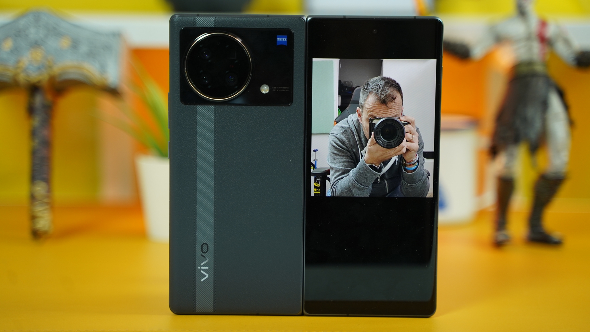 Όλη η ιστορία του X Fold + βέβαια είναι η εσωτερική οθόνη. Με το που ξεδιπλώνει κανείς τη συσκευή, βρίσκεται σε μια τεράστια Super Amoled οθόνη 8,03’’ ανάλυσης 2160x1916 pixel. Προφανώς, η vivo έχει φροντίσει ώστε ότι δείχνει η εξωτερική οθόνη πριν ανοίξει κανείς το τηλέφωνο, να μεταφερθεί αμέσως στη μεγάλη εσωτερική. Διαβάζει κανείς μια σελίδα στο Internet ή απαντάει σε ένα email αλλά θέλει περισσότερο χώρο; Απλά «ανοίγει» τη συσκευή και συνεχίζει αυτό που έκανε απλά σε μεγαλύτερη οθόνη, άμεσα και χωρίς καθυστερήσεις. Μάλιστα, μπορεί κανείς να κάνει και το ανάποδο, δηλαδή να φύγει από την εσωτερική μεγάλη οθόνη και να συνεχίσει στην εξωτερική. Η εσωτερική οθόνη βρίσκεται μερικά χιλιοστά πιο βαθιά σε σχέση με τα μικρά bezel, διαθέτει όπως είπαμε ενσωματωμένο αναγνώστη δακτυλικών αποτυπωμάτων τεχνολογίας ultrasonic καθώς μια selfie κάμερα των 16MP. Η εσωτερική, αναδιπλούμενη οθόνη είναι σκέτη απόλαυση για να χρησιμοποιεί κανείς τις διάφορες εφαρμογές του Android, με τη vivo να του έχει δώσει και μπόλικες δυνατότητες multitasking. Μέχρι τέσσερις εφαρμογές μπορούν να τρέξουν στην οθόνη ταυτόχρονα, εκ των οποίων οι δυο είναι σε split screen, είτε οριζόντια είτε κάθετα με δυνατότητα άμεσης εναλλαγής μεταξύ οριζόντιας ή κάθετης διάταξης. Όμως δε μπορούμε να μεταβάλουμε το μέγεθος των παραθύρων χωρίζοντας πχ τις εφαρμογές ώστε η μια να καταλαμβάνει το 1/3 της οθόνης και η άλλη τα 2/3. Μπορούμε επιπλέον να έχουμε δυο ακόμα εφαρμογές να τρέχουν σε παράθυρο πάνω από τις άλλες. Μια άλλη δυνατότητα που προσφέρει το software σε συνδυασμό με την οθόνη που διπλώνει αφορά στη χρήση των καμερών. Μπορούμε να τοποθετήσουμε το τηλέφωνο πάνω σε μια επιφάνεια και να ανασηκώσουμε το πάνω τμήμα του κατά 90 μοίρες. Με αυτό τον τρόπο μπορούμε να χρησιμοποιήσουμε τις κάμερες του τηλεφώνου για να βγάλουμε φωτογραφίες/βίντεο, χωρίς να το κρατάμε ή ακόμα καλύτερα μπορούμε να κάνουμε βίντεο-κλήσεις πάλι χωρίς να κρατάμε ή να χρειάζεται μια βάση στήριξης το τηλέφωνο. Με το που θα διπλώσουμε την οθόνη σε γωνία 90 μοιρών, η εφαρμογή χρήσης των καμερών προσαρμόζεται ώστε να εκμεταλλευτεί το νέο form factor. Όταν το τηλέφωνο είναι πλήρως ανοιχτό, η εφαρμογή εμφανίζεται με το τυπικό τρόπο. Με το που τα δυο τμήματα του τηλεφώνου έρθουν υπό γωνία, η εφαρμογή χωρίζεται στα δυο: στο πάνω κομμάτι της οθόνης φαίνεται μόνο το preview κάμερας και στο κάτω εμφανίζονται όλα τα ρυθμιστικά και οι διάφορες επιλογές ελέγχου. Όσον αφορά στο λεγόμενο crease (τη τσάκιση) της οθόνης στο σημείο που γίνεται η αναδίπλωση, αυτό είναι εμφανές, κάποιες φορές περισσότερο και άλλες λιγότερο (ανάλογα με το περιεχόμενο και το πως πέφτει πάνω του το φως). Όμως μετά από λίγο το συνηθίζει κανείς και δεν είναι πρόβλημα.
