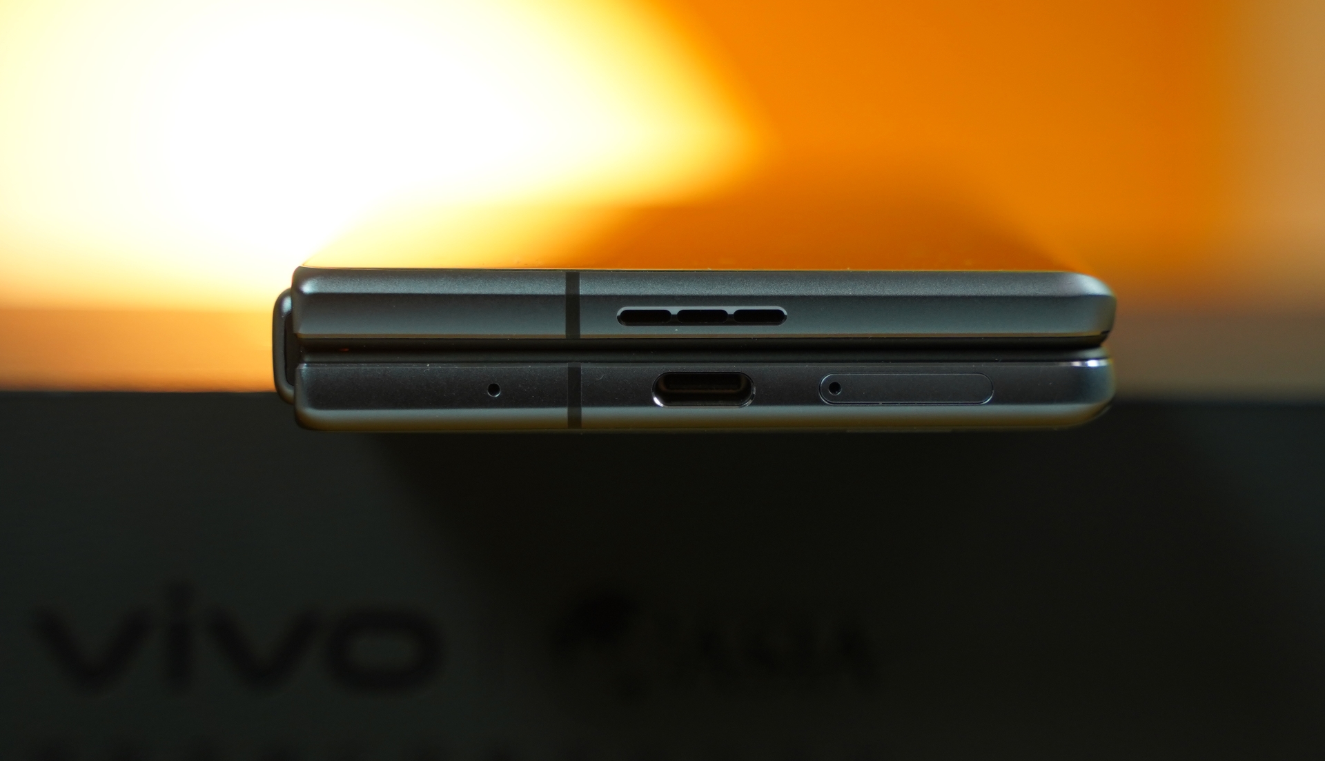 Στο κάτω μέρος της συσκευής συναντάμε τη θύρα Type-C USB, συμβατή με USB 3.1 και με δυνατότητα χρήσης σαν έξοδο HDMI. Ταυτόχρονα, στο κάτω μέρος υπάρχει και το ένα από τα δυο ηχείο με το δεύτερο να βρίσκεται προφανώς στο πάνω μέρος με το τηλέφωνο να προσφέρει στερεοφωνικό ήχο, ο οποίος γίνεται καλύτερα αντιληπτός όταν ξεδιπλώσουμε την εσωτερική οθόνη και κρατήσουμε το τηλέφωνο σε landscape, καθώς έτσι τα ηχεία είναι στα δεξιά και αριστερά της οθόνης. Στο πίσω μέρος της συσκευής βρίσκονται οι τέσσερις (!) βασικές κάμερες του vivo X Fold +, οι οποίες έχουν φακούς Zeiss Vario Tessar. Συγκεκριμένα, έχουμε ένα wide στα 50MP (1/1.57’’) με OIS και laser auto focus, ένα 2x telephoto στα 12MP, ένα ακόμα telephoto στα 8MP τεχνολογίας periscope με 5x οπτικό zoom και ένα ultrawide στα 48MP! Πραγματικά, το setup καμερών του vivo X Fold + είναι αρκετά πλούσιο θυμίζοντας ένα παραδοσιακό flagship τηλέφωνο, ενώ αν μη τι άλλο και μόνο η ύπαρξη του δεύτερου, periscope, τηλεφακού είναι ένα εντυπωσιακό επίτευγμα. Οι κάμερες κάνουν μια χαρά τη δουλειά τους και με το παραπάνω τόσο την ημέρα όσο και τη νύχτα. Ακόμα και στο βίντεο, το τηλέφωνο τα καταφέρνει εξαιρετικά, με το βασικό αισθητήρα να προσφέρει ακόμα και 8K30 βίντεο.