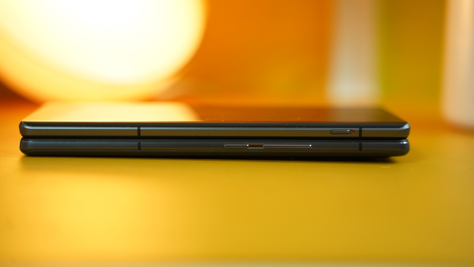 Στη δεξιά πλευρά βρίσκεται το power button παρέα με τα volume controls.Στην αριστερή πλευρά έχουμε το μηχανισμό που συγκρατεί τα δυο τμήματα του τηλεφώνου και επιτρέπει την αναδίπλωση της οθόνης, το λεγόμενο hinge. Αυτό όπως είπαμε επιτρέπει στα δυο τμήματα να κλείνουν εντελώς χωρίς να αφήνουν κενό ανάμεσά του. Από την άλλη, φαίνεται να έχει μικρότερο εύρος γωνιών που η οθόνη μπορεί να μείνει στη θέση της σε σχέση με το Z Fold 4 της Samsung, χωρίς αυτό να σημαίνει βέβαια πως δε μπορεί κανείς να έχει την εσωτερική οθόνη σταθερή σε πολλές διαφορετικές γωνίες. Η λειτουργία αυτή δίνει αρκετούς διαφορετικούς τρόπους χρήσης της συσκευής, ενώ ταυτόχρονα μεταφέρει στο χρήστη μια αυξημένη αίσθηση ποιότητας.