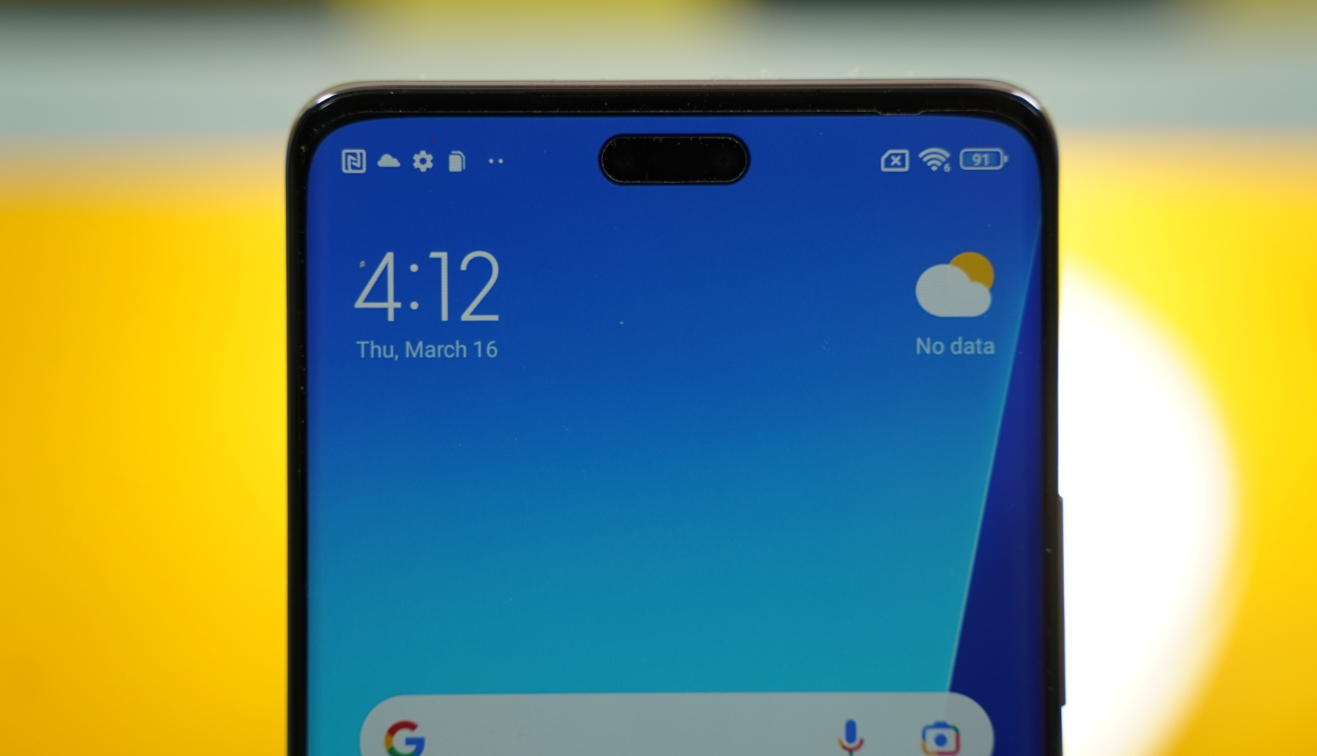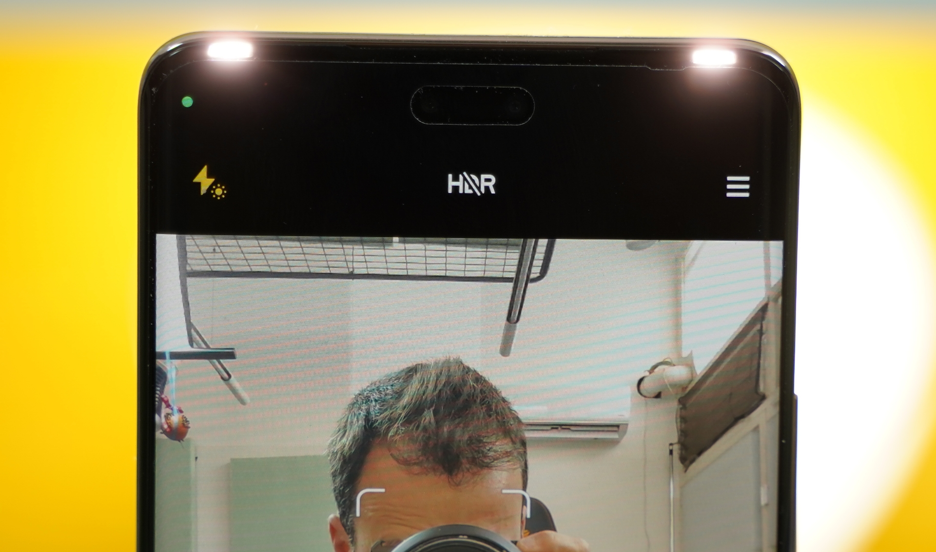 Η οθόνη του τηλεφώνου έχει διαγώνιο 6,55’’ και είναι κυρτή ενώ μέσα σε αυτή στο πάνω μέρος και κεντρικά τοποθετημένο βρίσκεται ένα διπλό σύστημα selfie καμερών, με τη μια εκ των δυο να λειτουργεί σαν αισθητήρας βάθους, ενώ συνοδεύεται και από δυο led flash στις δυο πάνω γωνίες της οθόνης.