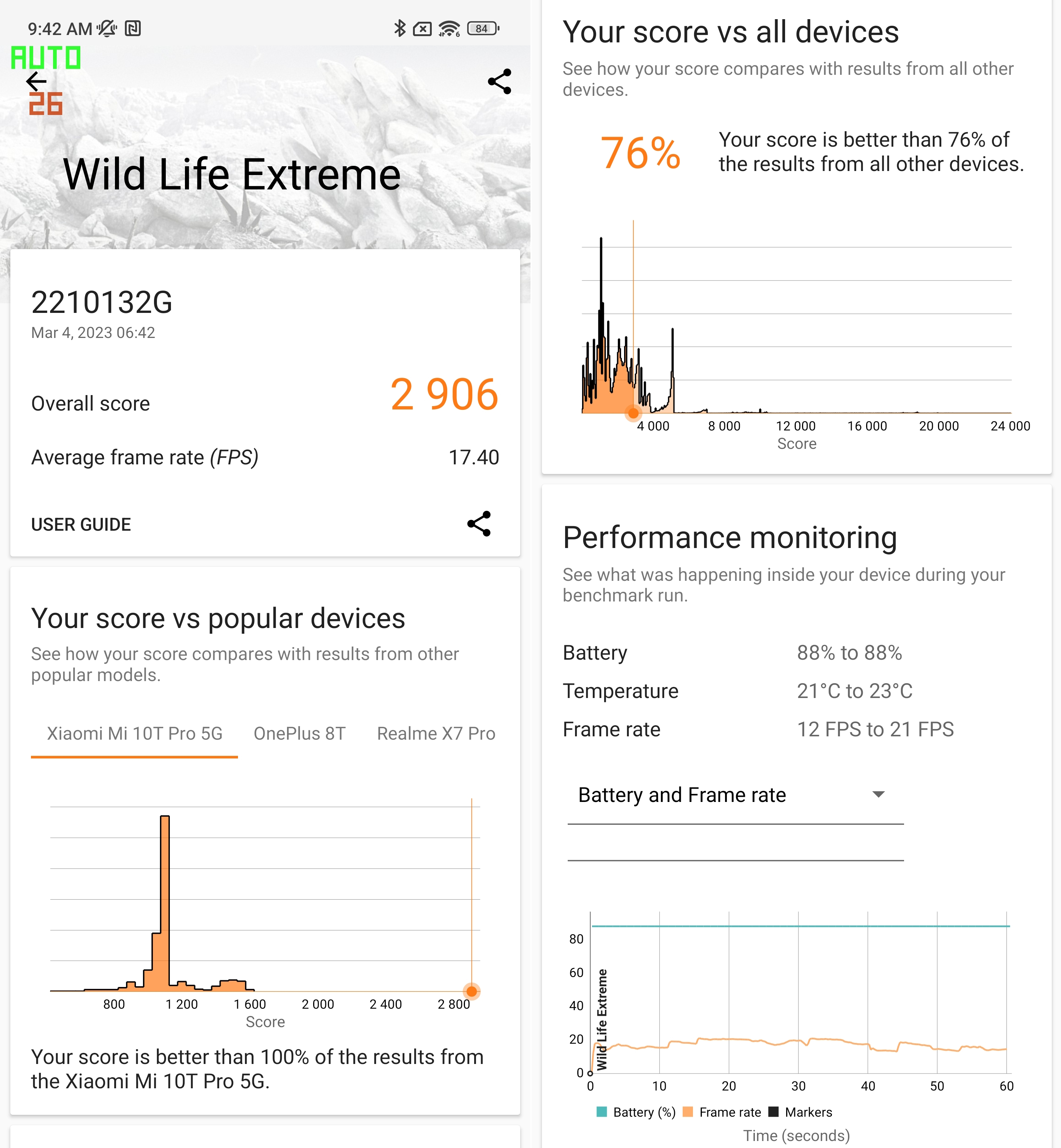 Είναι προφανές ότι η Xiaomi έχει επιλέξει επίτηδες αυτή τη συχνότητα για να μην υπάρχει κανένα θέμα υπερθέρμανσης του τηλεφώνου όταν κάποιος παίζει παιχνίδια, γιατί στα 3D benchmarks (όπως το GFX Bench και το 3D Mark) είδαμε τη GPU να τρέχει κανονικά στα 680MHz. Το θέμα όμως είναι ότι ο χρήστης δε μπορεί να απολαύσει στο μέγιστο τις επιδόσεις που μπορεί να προσφέρει η GPU, παρόλο που τα benchmarks μπορούν να τις δείξουν. Θεωρούμε πως η επιλογή αυτή είναι μεγάλο “φάουλ”, ειδικά από τη στιγμή που δεν υπάρχει κάποιος τρόπος να μπορεί να έχει ο χρήστης τη πλήρη ισχύ σε περιβάλλον gaming, καθώς ακόμα και στο performance mode της μπαταρίας, δεν αλλάζει τίποτα. Για του λόγου του αληθές μάλιστα, έχοντας ακόμα στη κατοχή μας το Samsung Galaxy S23 Ultra και βάζοντάς τα δίπλα δίπλα, η συσκευή της Samsung μπόρεσε να παίξει το God of War 2 στον AetherSX2 σε 4x ανάλυση με 60fps (με τη GPU να φτάνει στα 720Mhz αλλά να μη τα κρατάει ώρα) ενώ στο Xiaomi 13 Pro μπορέσαμε να παίξουμε μόνο σε 3x. Για τα περισσότερα Android games πάντως, ο χρήστης δε πρόκειται –σήμερα- να έχει κάποιο πρόβλημα καθώς δεν υπάρχει κάποιο game που να ζορίζει τόσο τη gpu. Από την άλλη βέβαια, η επιλογή της Xiaomi έχει και τα καλά της, καθώς το throttling –στη πράξη- είναι μηδενικό καθώς συγκεκριμένα μπορούσαμε να παίζουμε το God of War 2 στον AetherSX2 σε 3x ανάλυση για ώρες, χωρίς να ζεσταίνεται το τηλέφωνο.