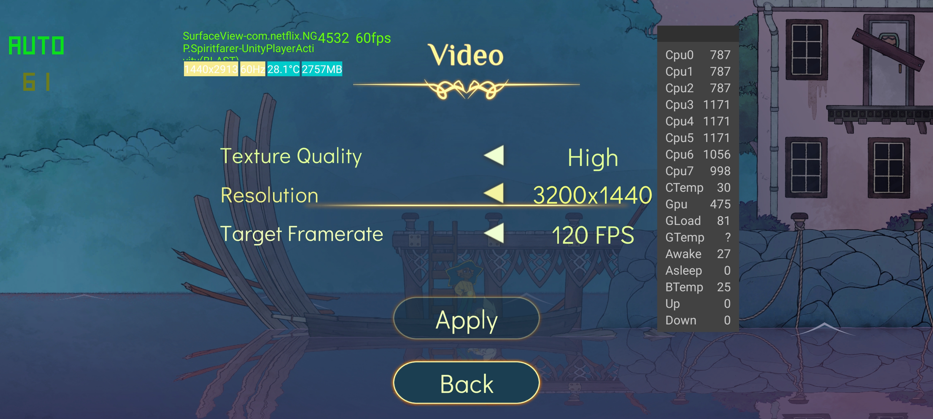 Ακόμα και έτσι, κανένα παιχνίδι δε γύρισε στα 120fps, με την οθόνη να παραμένει στα 60Hz κάτι που επιβεβαιώσαμε με διάφορους τρόπους, είτε με τον ingame counter του Titan Quest είτε με τα power tools που μπορούμε να τρέξουμε μέσω των developer settings. Είναι πραγματικά κρίμα και ελπίζουμε να αλλάξει αυτή η κατάσταση σε κάποιο μελλοντικό update, γιατί το τηλέφωνο μπορεί να παίξει άνετα τα πάντα και θα θέλαμε να παίξουμε πχ το Spiritfarer στα 120fps στη native ανάλυση της οθόνης, καθώς το game προσφέρει τις απαραίτητες ρυθμίσεις για κάτι τέτοιο