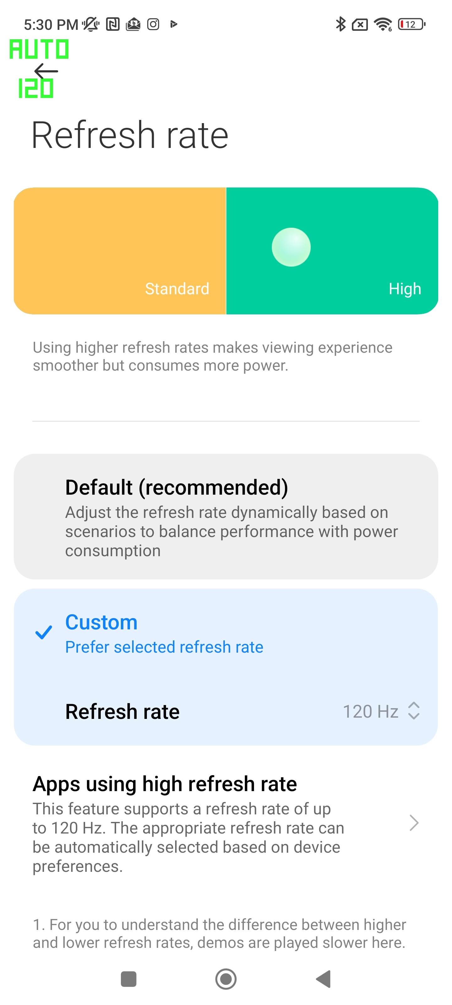 Οι παραπάνω επιλογές που εμφανίζονται επιλέγοντας 120Hz για την οθόνη.