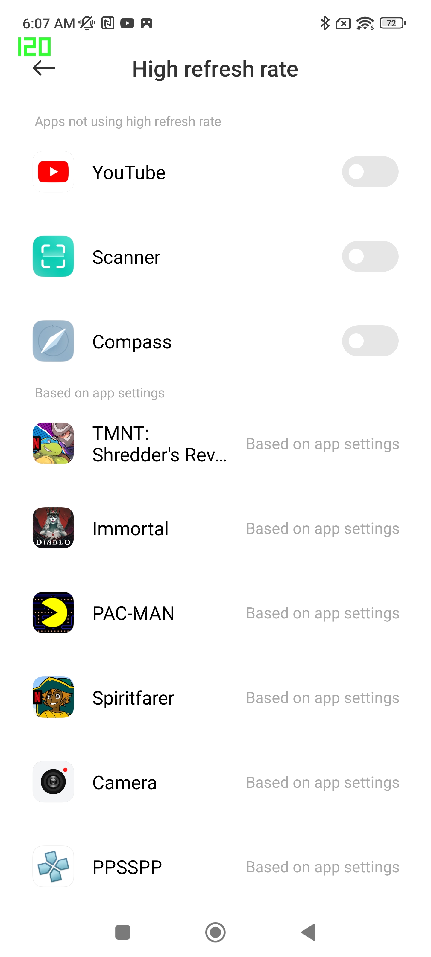 Όσον αφορά στα παιχνίδια πάλι, η Xiaomi φέτος κάτι άλλαξε σε σχέση με άλλες συσκευές της και δε καταφέραμε να κάνουμε κανένα παιχνίδι να τρέξει στα 120fps, ότι ρυθμίσεις και αν κάναμε. Δοκιμάσαμε πλήθος παιχνιδιών που για παράδειγμα στο Xiaomi Mi 11 Ultra παίζουν στα 120fps, αλλά… τζίφος. Είτε με το refresh rate στην αυτόματη ρύθμιση είτε καρφωμένο στα 120Hz, είτε στο performance mode της μπαταρίας είτε στο κανονικό, δεν έγινε τίποτα, όπως και τίποτα δεν άλλαξε χρησιμοποιώντας την εφαρμογή Game Turbo που διαθέτει πλήθος από ρυθμίσεις για τα games. Μάλιστα, αξίζει να αναφέρουμε πως εφόσον βάλουμε την οθόνη στα 120Hz, ξεκλειδώνει ένα επιπλέον menu, μέσω του οποίου έχουμε τη δυνατότητα να ενεργοποιήσουμε ξεχωριστά το μέγιστο refresh rate ανά εφαρμογή.
