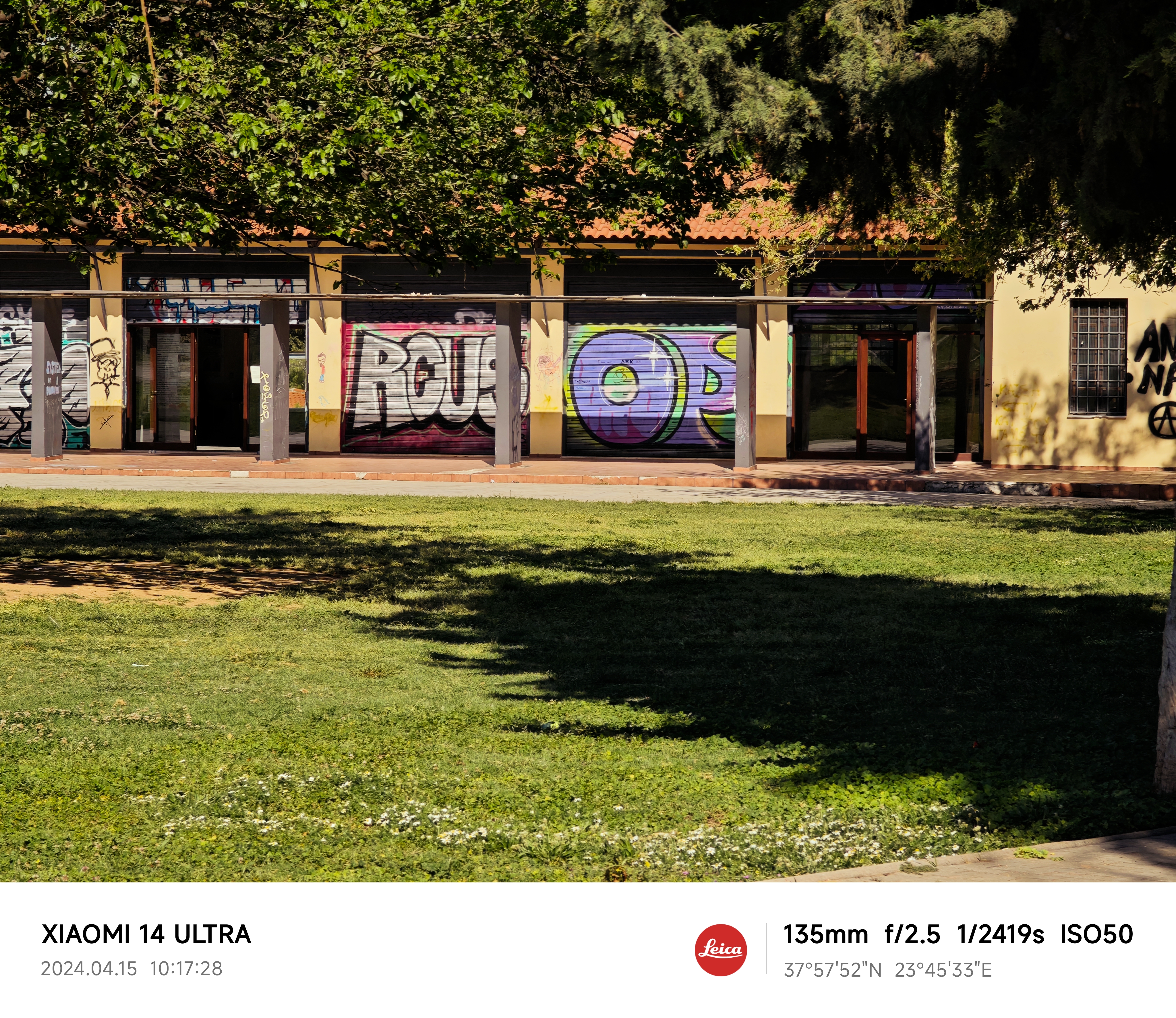 Εκεί που δε μπορούσε να πάει το Xiaomi 14 με φυσικό τρόπο, πάει το 14 Ultra χάρη στον telephoto 5x. Εξαιρετικός και αυτός, αν και όχι τόσο φωτεινός όσο ο 3.2x καθώς έχουμε να κάνουμε με περισκοπική υλοποίηση και τους περιορισμούς στα οπτικά που αυτή βάζει. Και πάλι όμως, τα καταφέρνει εξαιρετικά τη μέρα. Τη νύχτα βέβαια, είναι ίσως η λιγότερη ικανή κάμερα από όλες, χωρίς αυτό να σημαίνει πως δε θα βγάλετε καλές φωτογραφίες. Να σημειώσουμε πάντως πως το software της κάμερας έχει ενεργή μια ρύθμιση που ουσιαστικά αυτόματα γυρνάει στη βασική κάμερα όταν ο περιβάλλον φωτισμός είναι πολύ χαμηλός, οπότε το zoom σε αυτή τη περίπτωση είναι digital. Εμείς την απενεργοποιήσαμε για να έχουμε το αποτέλεσμα της ίδιας της κάμερας. Και η 5x κάμερα εστιάζει κοντά (από τα 30εκ) όμως, τελικά καταλήξαμε ότι η 3.2x είναι η καταλληλότερη κάμερα για macro. Η 5x μπορεί να δώσει πάντως όμορφα πορτραίτα αν έχουμε τη κατάλληλη απόσταση από το πρόσωπο, όμως δεν είναι διαθέσιμη για χρήση μέσα από το ξεχωριστό portrait mode που έχει το software. Στο κομμάτι του zoom γενικότερα, πέρα από το 5x, το τηλέφωνο τα καταφέρνει εξαιρετικά στο 10x που είναι ουσιαστικά cropped από τον αισθητήρα του περισκοπικού φακού. Μέχρι και το 30x μπορούμε να έχουμε πραγματικά καλές λήψεις, τηρουμένων των αναλογιών, ενώ στο 30x ενεργοποιείται αυτόματα (και εμφανίζεται ένα ξεχωριστό εικονίδιο στην οθόνη) η λειτουργία AI που ενσωματώνει το Xiaomi 14 Ultra. Πρόκειται για generative AI το οποίο προσπαθεί να ξαναδημιουργήσει αυτό που πιστεύει ότι βλέπει. Ακόμα και μέχρι το 60x μπορούμε να πούμε ότι δίνει αξιοποιήσαμε αποτελέσματα ενώ και στο μέγιστο zoom 120x, διορθώνει αρκετά τη φωτογραφία. Βέβαια, πάνω από το 40x δε μπορούμε να πούμε ότι πάντα κάνει καλή δουλειά, ενώ ενεργοποιείται μόνο όταν ο φωτισμός είναι καλός.