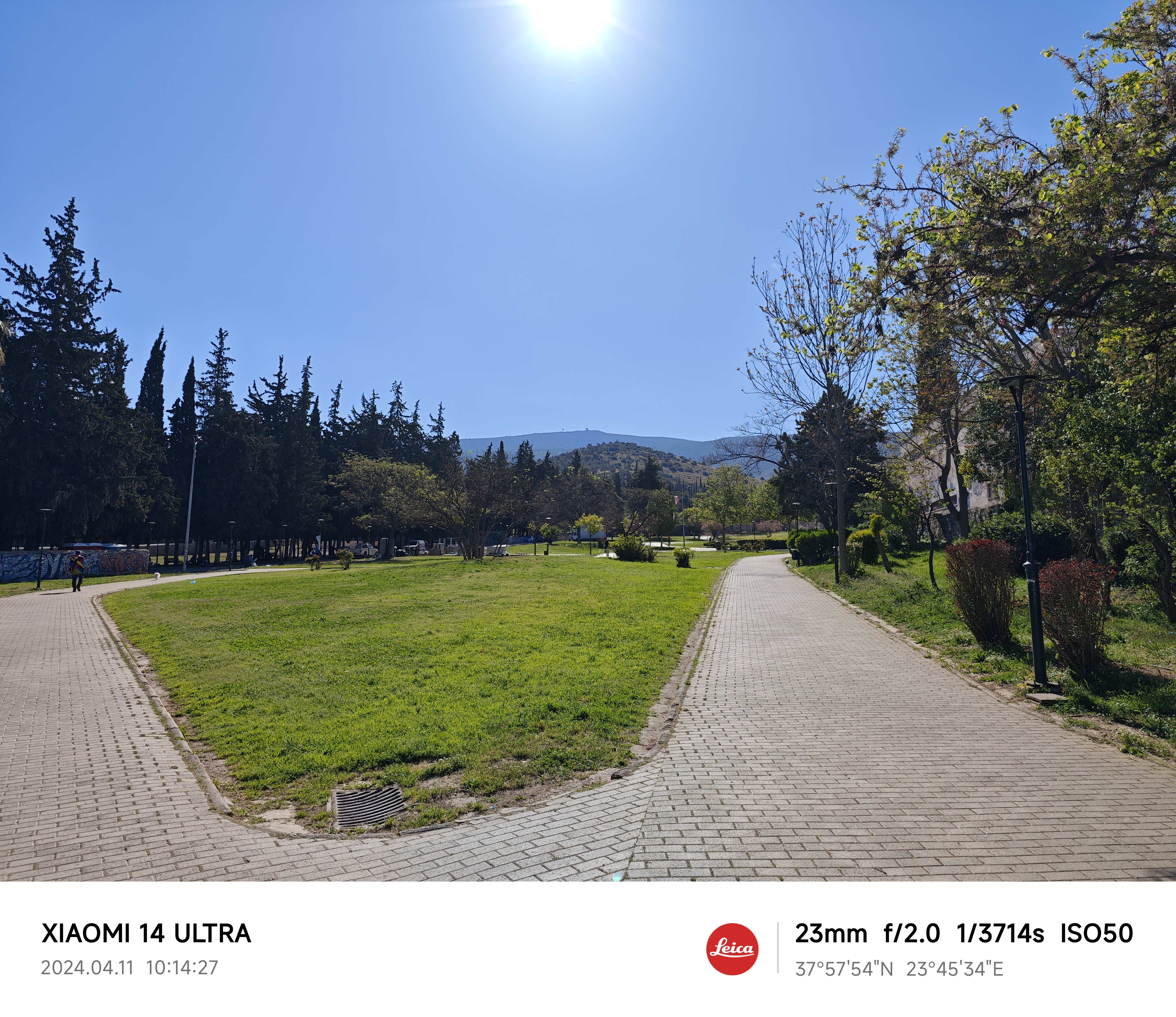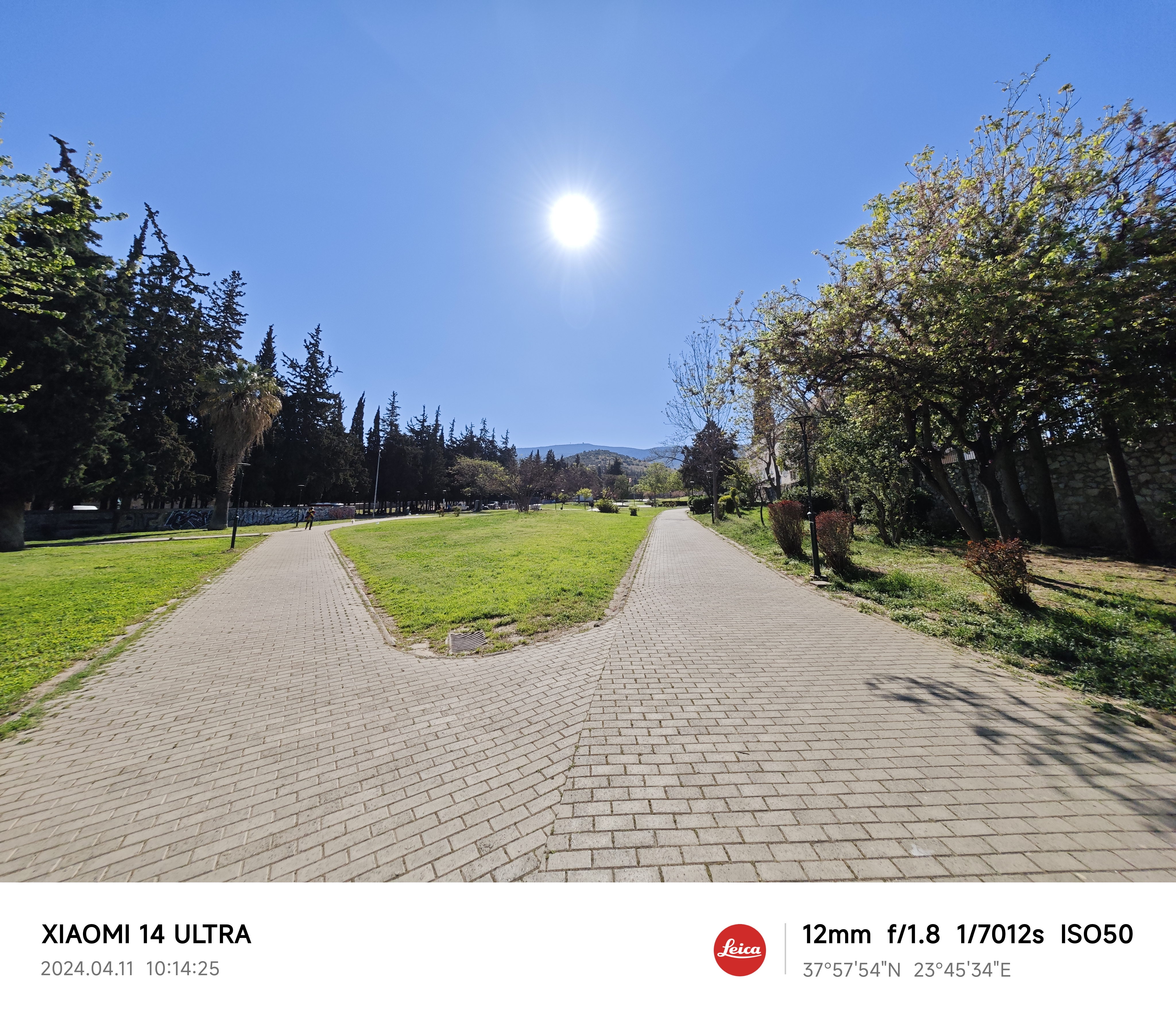 Το βράδυ μπορεί κανείς να γυρίσεις σε f/1.6 για να έχει περισσότερο φως, χωρίς ND φυσικά. Για ακόμα περισσότερο επαγγελματικό αποτέλεσμα, στο pro mode μπορεί κανείς να τραβήξει τόσο σε RAW όσο και σε Ultra RAW, με το δεύτερο να προσφέρει μεν RAW αρχείο, αλλά η λήψη να γίνεται με το παραδοσιακό stacked πολλών λήψεων τρόπο, για χαμηλότερο θόρυβο και μεγαλύτερο δυναμικό εύρος, αλλά έχοντας πάντα τις δυνατότητες edit που προσφέρει ένα RAW αρχείο. Να σημειώσουμε ότι μέσω του βασικού φακού, το Xiaomi 14 Ultra μπορεί να βγάλει σχεδόν lossless λήψεις με zoom 2x. Γενικότερα, ο βασικός φακός προσφέρει πραγματικά κορυφαία εμπειρία, άριστες λήψεις και είναι ότι κοντινότερο μπορεί να έχει κανείς σε κανονική φωτογραφική μηχανή, πόσο μάλλον χρησιμοποιώντας και το grip του κάμερα kit.