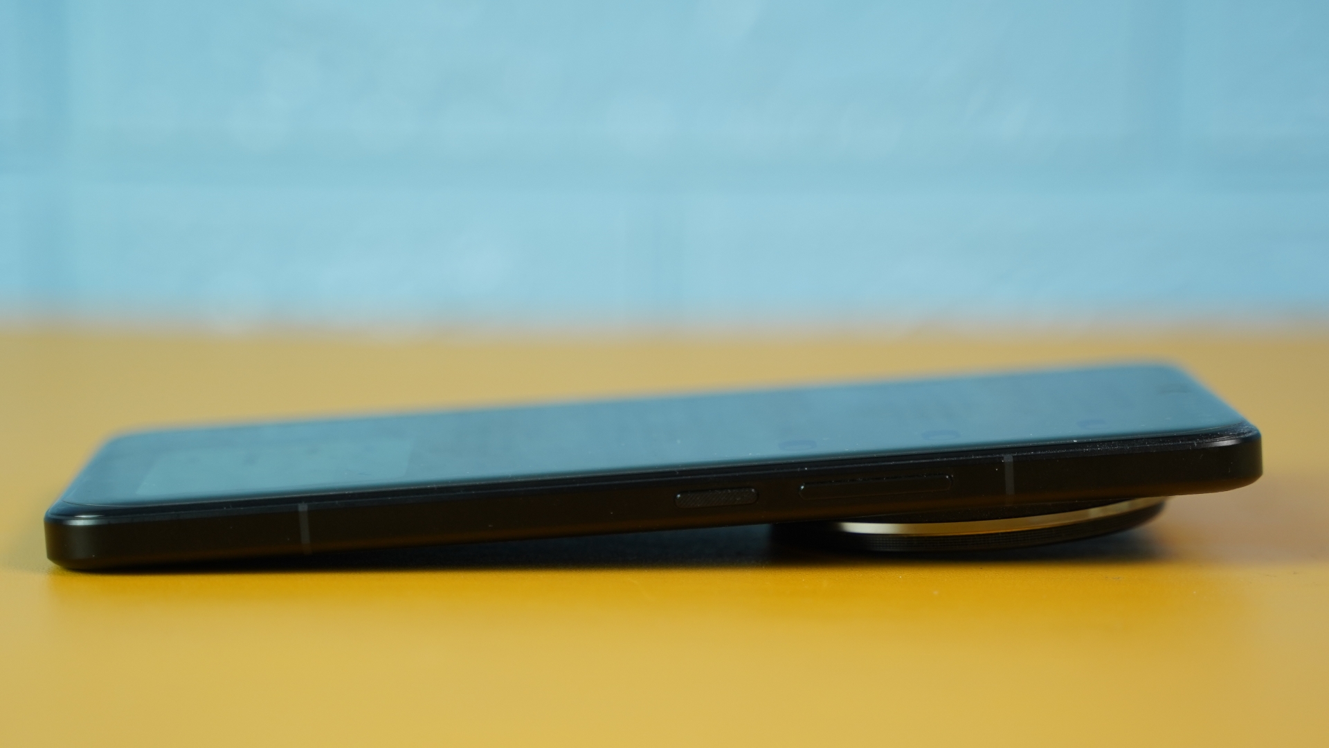 Τώρα, ο δείκτης στερεώνεται κάτω από το «εξόγκωμα» των καμερών, αλλά επειδή το βάρος στη πάνω πλευρά είναι μεγάλο, χρειάζεται λίγο προσοχή ώστε το κράτημα με τη παλάμη να είναι πιο γερό, ούτως ώστε να μη κινδυνεύει το τηλέφωνο να φύγει από το χέρι. Βέβαια, η vegan leather πλάτη αλλά και η θήκη της συσκευασίας βοηθάνε ώστε η συσκευή να κρατιέται καλά στο χέρι και να μη γλιστρά. Οι υπόλοιπες διαστάσεις της συσκευής είναι φυσιολογικές. Έχει όλες τις πλευρές του επίπεδες, οι γωνίες είναι στρογγυλεμένες και η πλάτη όπως είπαμε είναι από συνθετικό δέρμα.