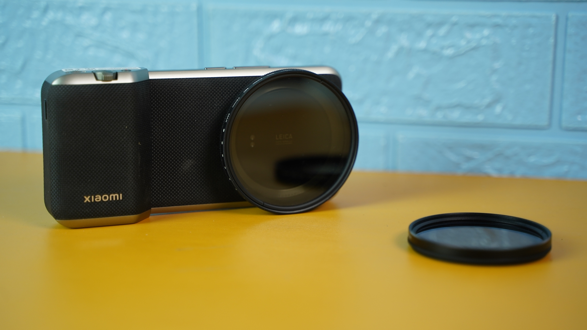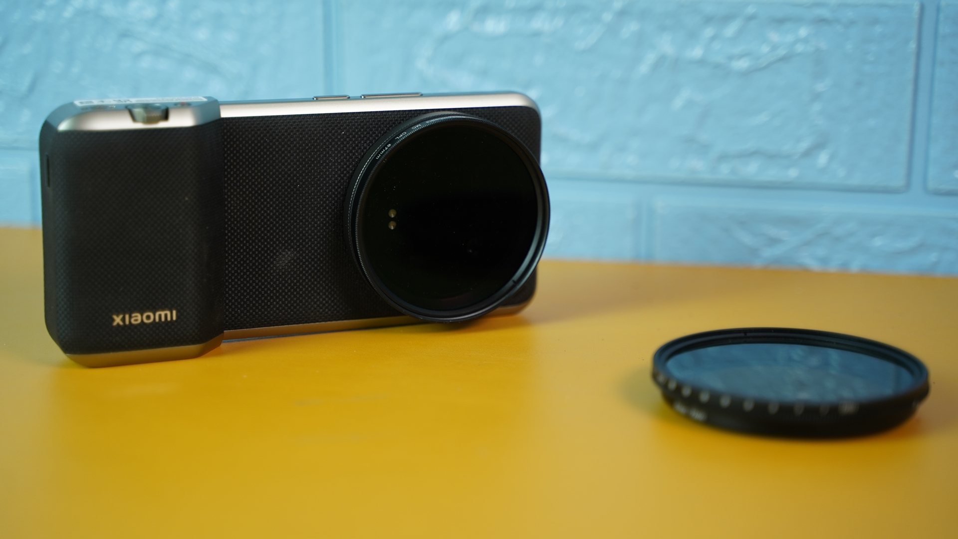 Το Xiaomi 14 Ultra με το Photography Kit και φορεμένο ένα μεταβλητό φίλτρο ND 72mm με step up ring από τα 67mm του thread. Ο UW με αυτό το setup "βλέπει" λίγο από το φίλτρο.