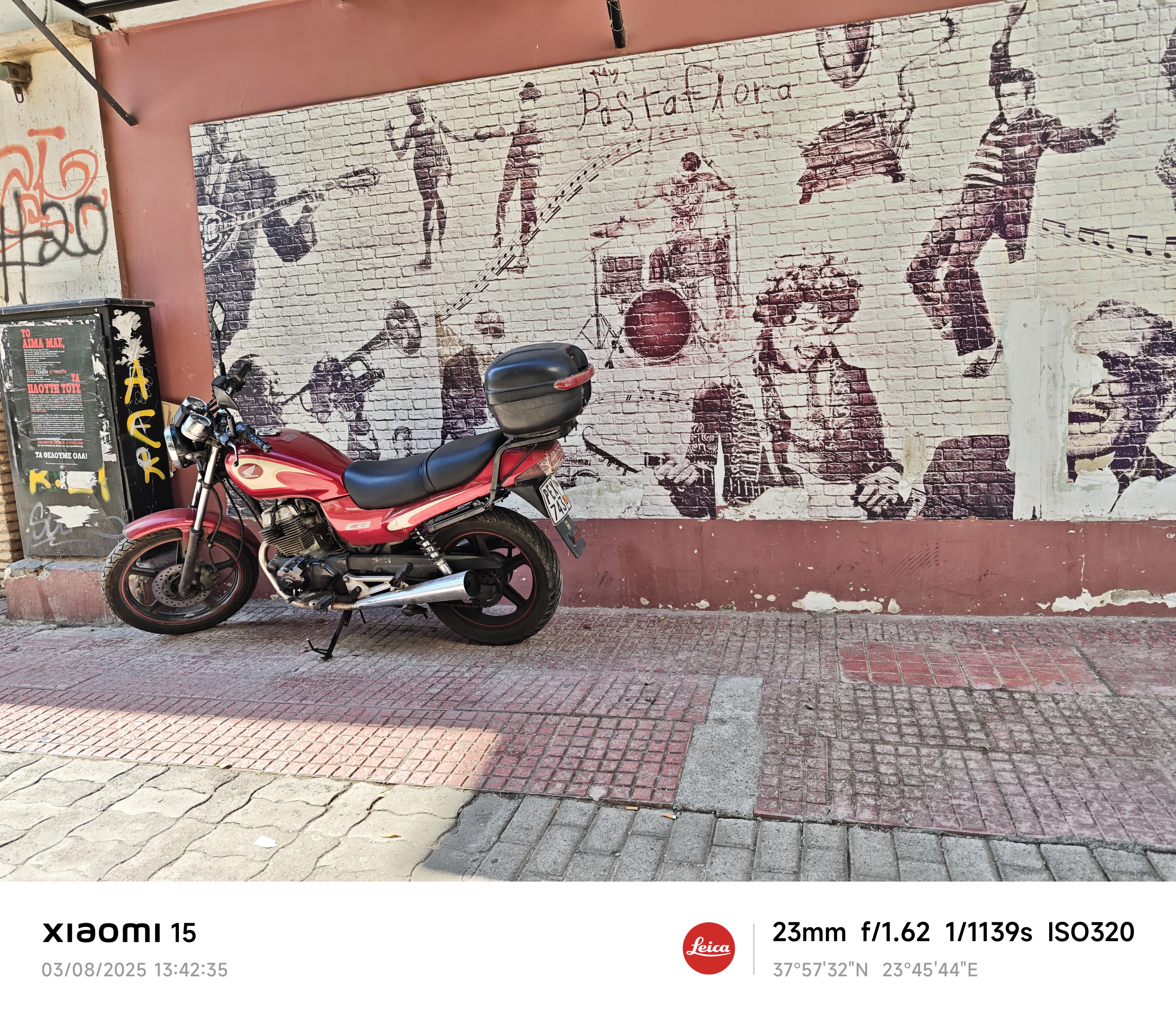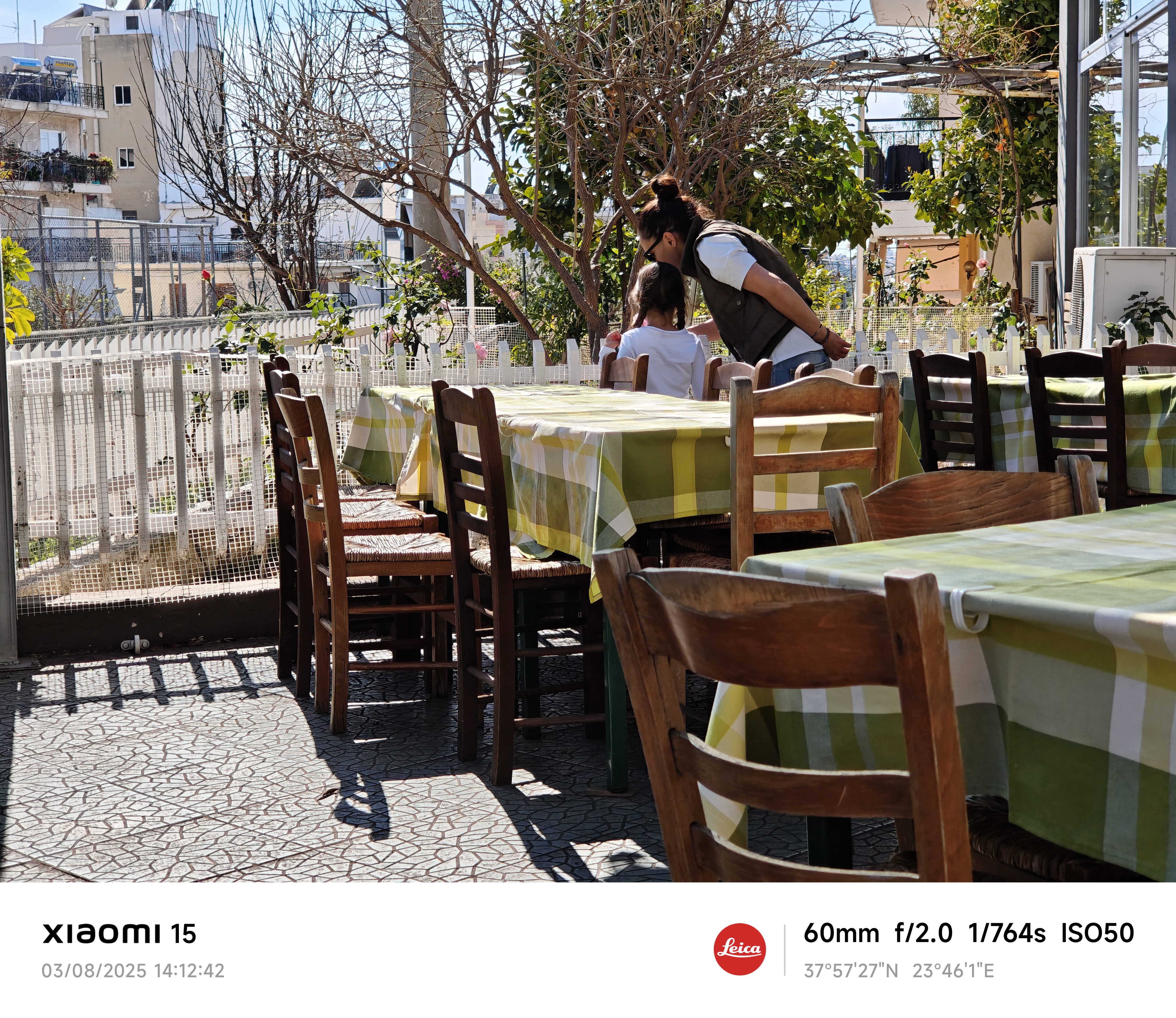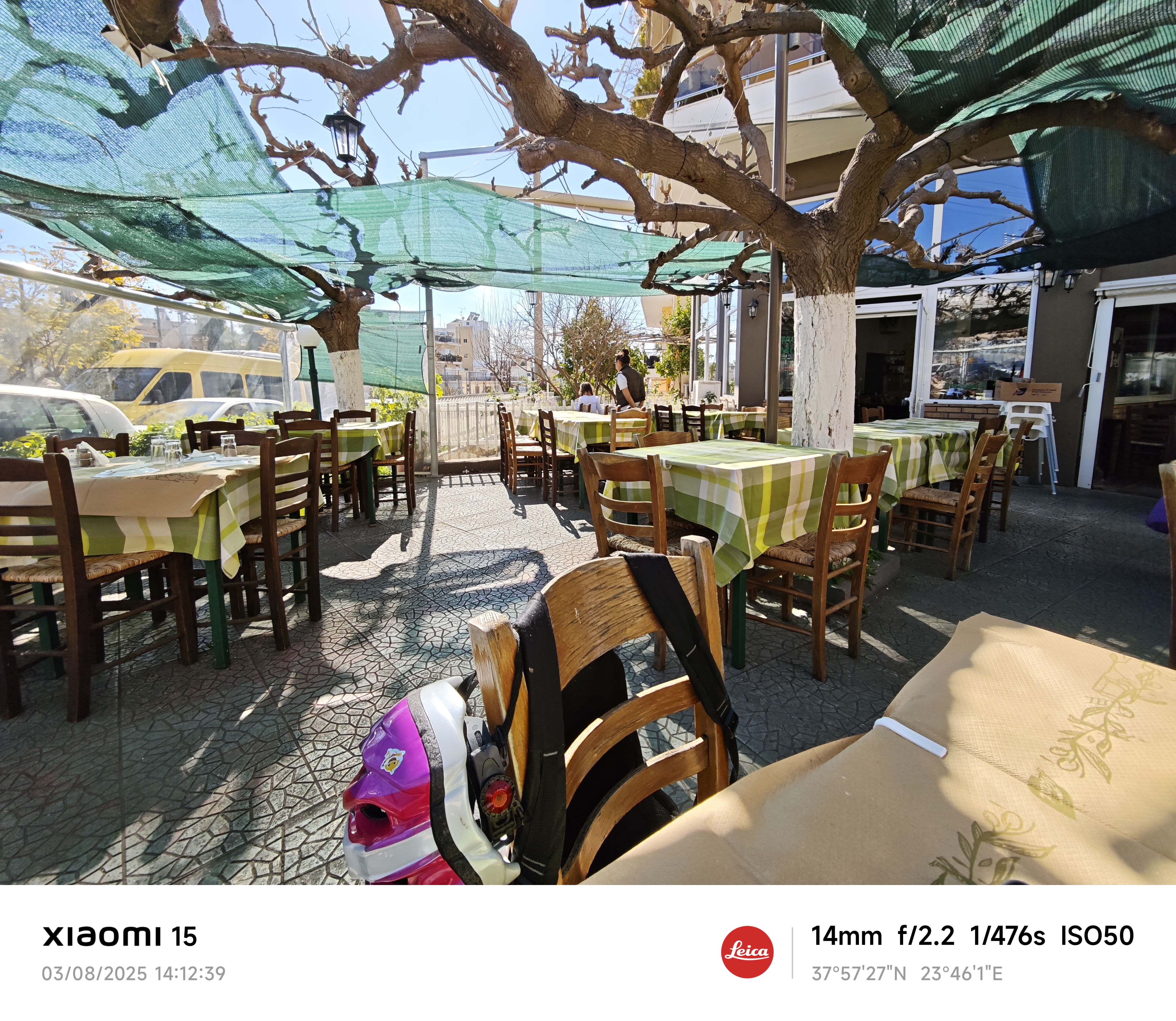 Το camera app δεν είναι το ίδιο με του Xiaomi 15 Ultra (ακόμα και μετά τις τελευταίες αναβαθμίσεις του firmware) αλλά ίδιο με αυτό των Xiaomi 14/Xiaomi 14 Ultra. Πριν αρχίσει κανείς να βγάζει φωτογραφίες, καλείται να επιλέξει ποιο χρωματικό προφίλ της Leica θα χρησιμοποιήσει, το Vibrant που δίνει περισσότερο ζωντανά χρώματα ή το Authentic που προσπαθεί να δώσει χρώματα που ταιριάζουν με το αυθεντικό προφίλ της Leica. Δεν υπάρχει καλύτερο ή χειρότερο, είναι απλά τι προτιμά ο καθένας.