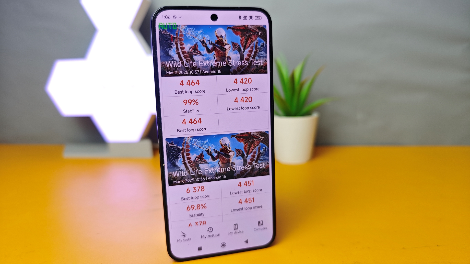 Οι επιδόσεις του Snapdragon 8 Elite είναι γενικά εξαιρετικές, ωστόσο η συσκευή κάνει throttling στο 3D Mark Wild Life Extreme Stress Test. Με αρχικό αποτέλεσμα 6378 πόντους, πέφτει σχετικά γρήγορα στους 5000 πόντους (9 λεπτά), ενώ καταλήγει από το 11 λεπτό γύρω στους 4450 πόντους, με το stability να είναι της τάξης του 70% και τη μέγιστη θερμοκρασία να φτάνει στους 48 βαθμούς κελσίου. Τρέχοντας «στα καπάκια» δεύτερη φορά το ίδιο τεστ, το τηλέφωνο διατηρεί τις ίδιες –με τις ελάχιστες του πρώτου run- επιδόσεις από την αρχή με το τέλος του 20λεπτου stress test, με τη θερμοκρασία του SoC να φτάνει στους 50 βαθμούς και τη συσκευή να είναι αρκετά ζεστή. Στη πράξη όμως και σε κανονικές συνθήκες gaming, εφόσον δε λειτουργούν τα πάντα στο 100%, δε θα έχει κανείς πρόβλημα. Οι εναλλαγές μεταξύ εφαρμογών δε καθυστερούν καθόλου και γενικά η εμπειρία χρήσης είναι εξαιρετική λόγω ταχύτητας. Γενικότερα, στο τομέα των επιδόσεων, είτε έχουμε να κάνουμε με τη τυπική καθημερινή χρήση της συσκευής είτε με το gaming, το Xiaomi 15 είναι μια άριστη επιλογή, ειδικά από τη στιγμή που λόγω των διαστάσεών του, μπορεί κανείς να το χρησιμοποιήσει άνετα και με οποιοδήποτε τηλεσκοπικό χειριστήριο. Από εκεί και πέρα, το τηλέφωνο είναι συμβατό με 5G δίκτυα και υποστηρίζει το WiFi7, είναι από τα πρώτα τηλέφωνα με Bluetooth 6, φυσικά διαθέτει NFC ενώ έχει λάβει και πιστοποίηση IP68.