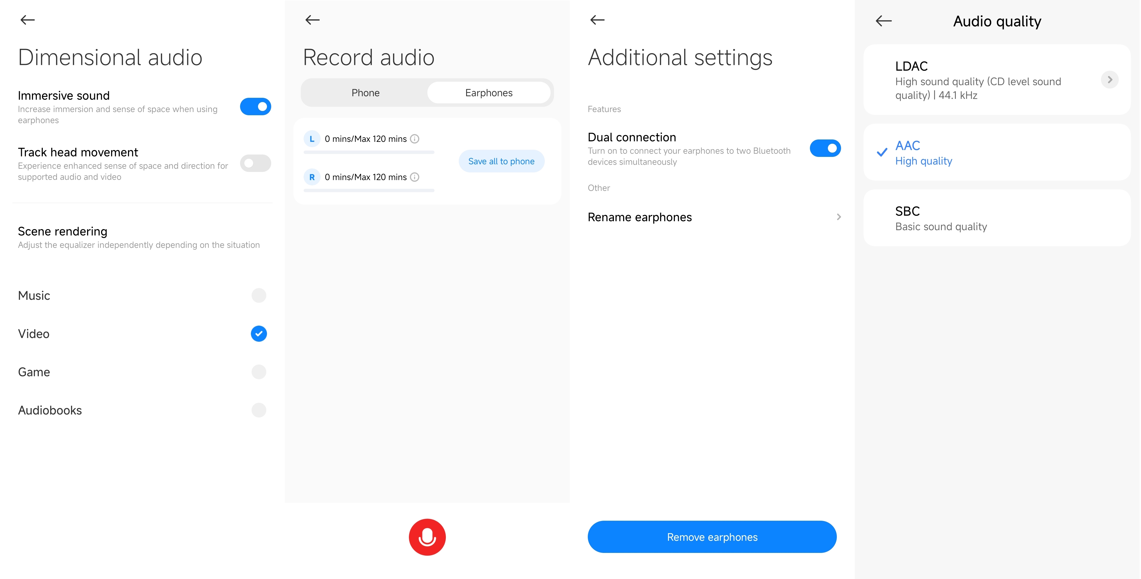 Ωστόσο, δεν είναι όλες οι δυνατότητες διαθέσιμες στην εφαρμογή αυτή, καθώς οι χρήστες τηλεφώνων της Xiaomi έχουν επιπλέον επιλογές μέσα από το HyperOS. Μια από αυτές είναι το Personalized Sound για να ρυθμίσουμε το equalizer των ακουστικών μέσα από μια σειρά ακουστικών τεστ. Μια άλλη και αρκετά σημαντική είναι αυτή που αφορά στην επιλογή codec ήχου. Αρχικά τα ακουστικά χρησιμοποιούν το AAC όμως μπορεί κανείς να επιλέξει το LDAC codec (HiRes Audio μέχρι 96Khz), για καλύτερη ποιότητα ήχου.