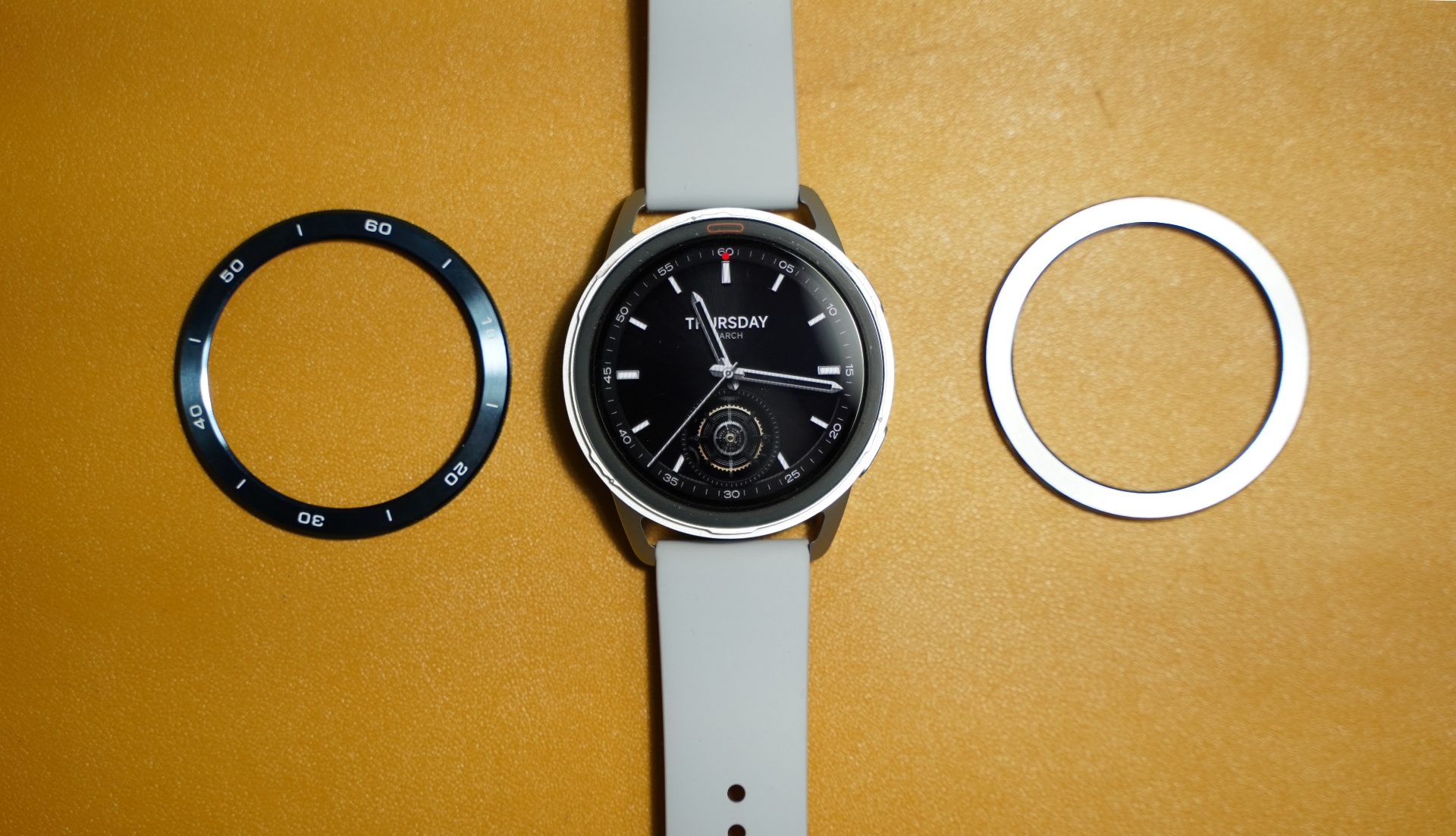 Η διαδικασία αλλαγής είναι πανεύκολη, καθώς περιστρέφοντας αντίστροφα από τους δείκτες τη στεφάνη αυτή ξεβιδώνει και αντίστοιχα τοποθετώντας μια άλλη με βάση τους οδηγούς που έχει στο κάτω μέρος της και περιστρέφοντας προς τα δεξιά αυτή ασφαλίζει στη θέση της. Το εντυπωσιακότερο όλων είναι ότι με το που θα τοποθετήσουμε μια από τις διαθέσιμες στεφάνες, αλλάζει αυτόματα και το watch face σε αυτό που ταιριάζει στη συγκεκριμένη στεφάνη! Δε ξέρουμε πως το έχει πετύχει η Xiaomi αυτό, όμως πραγματικά ολοκληρώνει μια πανέξυπνη ιδέα!