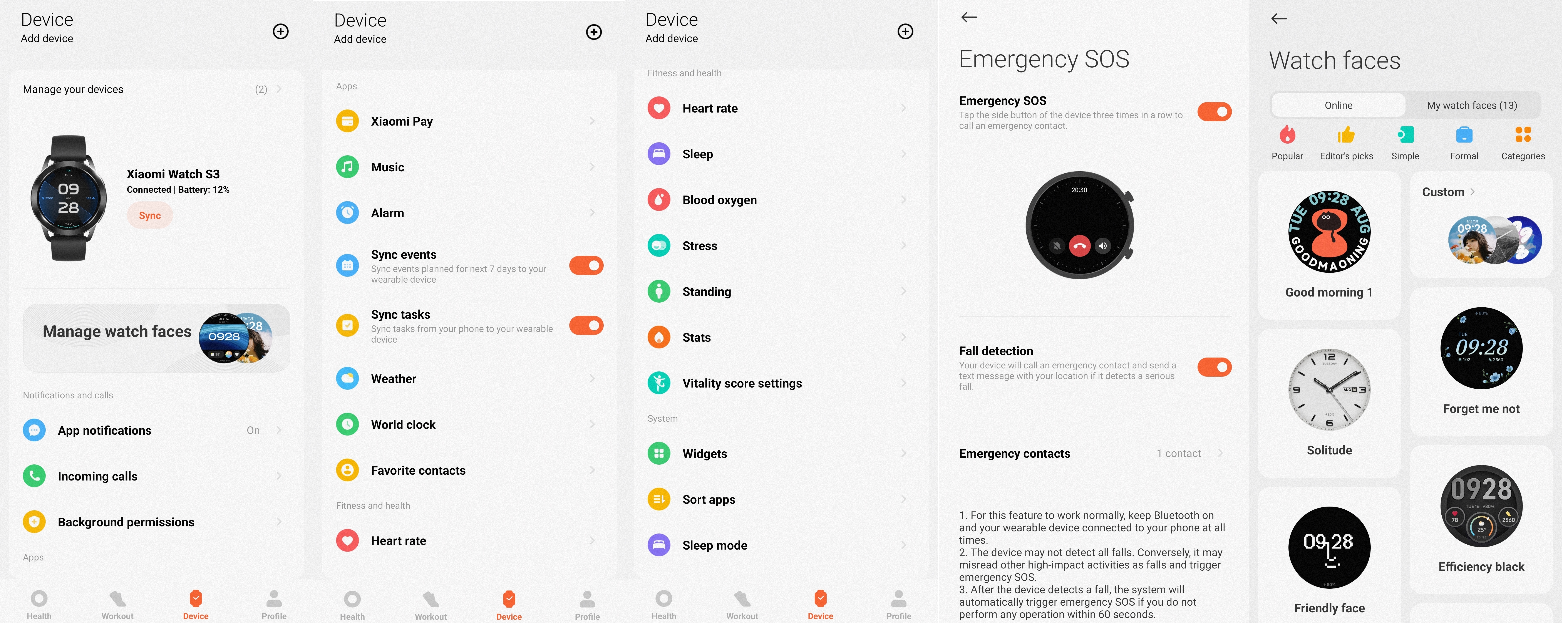 Μπαίνοντας στο μενού εφαρμογών, μπορούμε να μετακινηθούμε ανάμεσά τους με το δάχτυλό μας πάνω στην οθόνη αφής. Από τη κεντρική οθόνη με κύλιση του δαχτύλου προς τα κάτω βλέπουμε τις ειδοποιήσεις και προς τα πάνω το βασικό μενού ρυθμίσεων. Με κύλιση προς τα δεξιά ή τα αριστερά, εμφανίζονται οι κάρτες εφαρμογών που έχουμε επιλέξει εμείς να είναι διαθέσιμες και έχουμε παραμετροποιήσει από το Mi Fitness app. Οι λειτουργίες που προσφέρει το ρολόι εκτελούνται εξαιρετικά γρήγορα και γενικά δε παρατηρήσαμε καμία καθυστέρηση. Το Watch S3 διαθέτει και ηχείο και μικρόφωνο, κάτι που το καθιστά μια συσκευή επικοινωνίας. Δοκιμάσαμε αρκετές φορές να συνομιλήσουμε μέσω του ρολογιού και μείναμε απόλυτα ικανοποιημένοι. Το ηχείο είναι δυνατό και μεταφέρει καθαρό ήχο. Ένα άλλο πλεονέκτημα που έχει το ενσωματωμένο ηχείο είναι ότι κάποιος μπορεί να ακούσει μουσική μέσω αυτού, είτε αυτή παίζει από το smartphone είτε είναι αποθηκευμένη στο ίδιο το ρολόι (διαθέτει 2GB). Επιπλέον, το ρολόι προσφέρει απευθείας σύνδεση με ακουστικά μέσω Bluetooth και έτσι μπορεί κανείς να βγει για προπόνηση, χωρίς να πάρει μαζί το κινητό του, και να έχει μουσική, με το ενσωματωμένο δέκτη GPS και τους υπόλοιπους αισθητήρες που υπάρχουν να καταγράφουν όλα τα δεδομένα. Να σημειώσουμε ότι ο δέκτης GPS υποστηρίζει 5 διαφορετικές τεχνολογίες δορυφόρων, με τη καταγραφή να είναι αρκετά ακριβής. Στη συνέχεια, μέσω της εφαρμογής Mi Fitness (η οποία απαιτείται και για το αρχικό pairing του ρολογιού) γίνεται η μεταφορά δεδομένων στο κινητό. Μέσα από αυτή μπορεί κανείς να προσθέσει νέα watch faces, με τα διαθέσιμα να είναι μπόλικα και αρκετά εκ των οποίων να μπορούν να γίνουν edit.