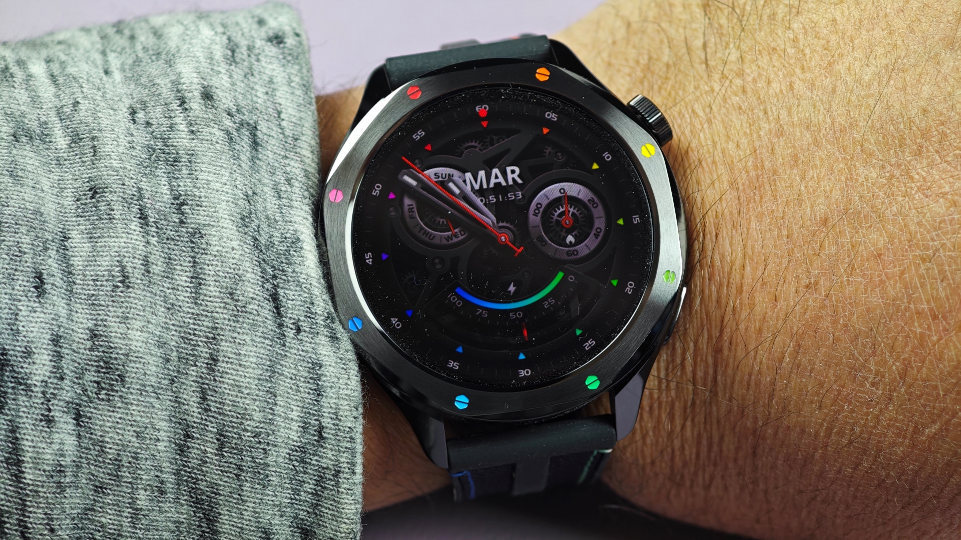 Κάτι που πρέπει να αναφέρουμε είναι πως το λουράκι χρησιμοποιεί πίρους των 22mm και μπορεί κανείς να τοποθετήσει όποιο συμβατό λουράκι θέλει, με το προϋπάρχον να προσφέρει ειδικούς διακόπτες για να το αφαιρέσει κανείς. Η Xiaomi μας έστειλε και ένα ακόμα δικό της λουράκι, ενώ διαθέσει και άλλα χρώματα. Δεν είναι όμως μόνο το χρώμα στα λουράκια που μπορεί να αλλάξει κανείς, αλλά και αυτό της ίδιας της στεφάνης του ρολογιού, κάτι που είδαμε για πρώτη φορά στο Watch S3. Η Xiaomi έχει κάνει μια πραγματικά εξαιρετική επιλογή, δίνοντας στο χρήστη τη δυνατότητα να αφαιρέσει τη στεφάνη γύρω από την οθόνη και να την αντικαταστήσει με μια άλλη.