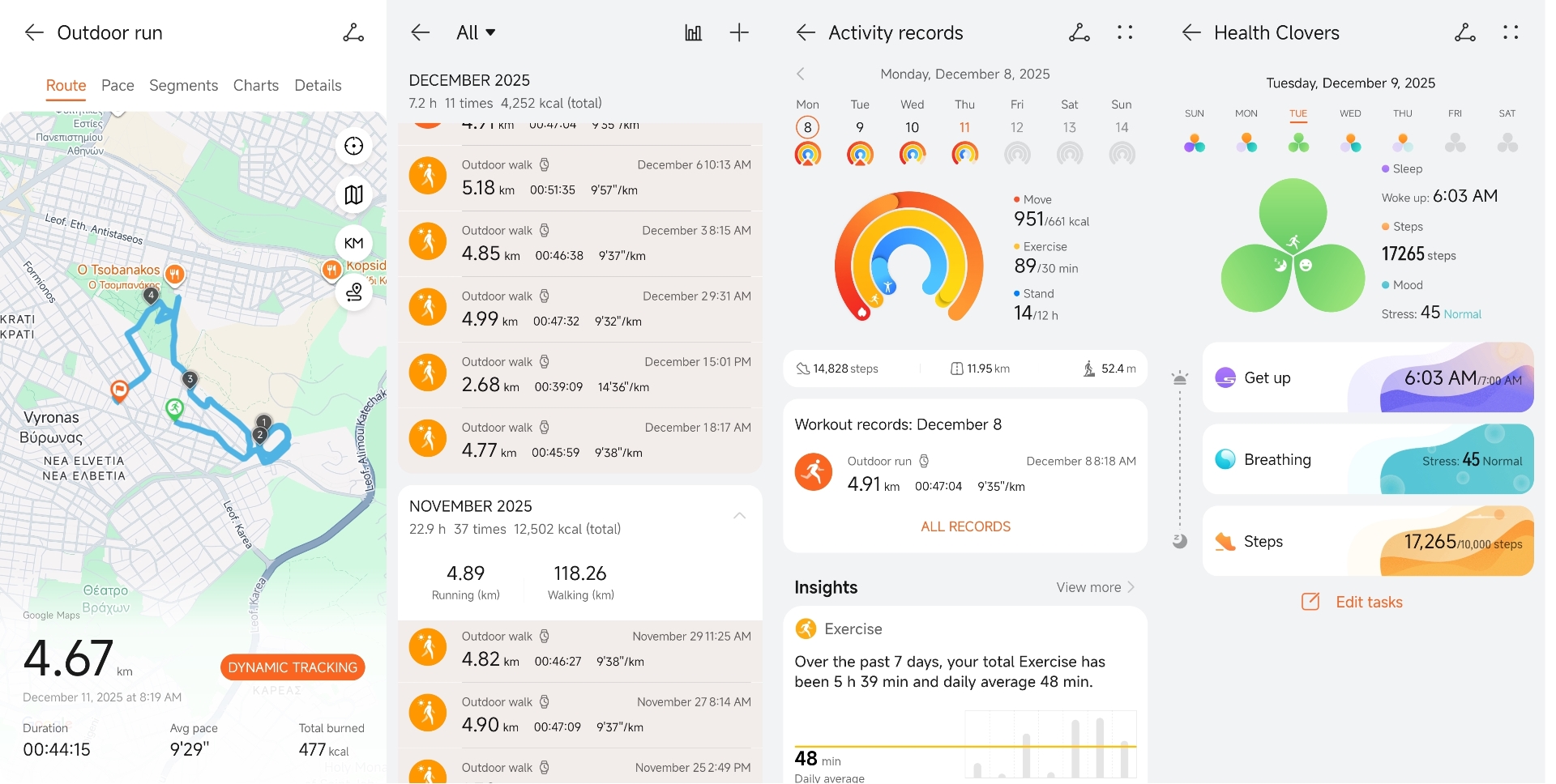 Και μετά είναι και τα στατιστικά. Για παράδειγμα, μόνο τον Νοέμβρη κατέγραψα σχεδόν 125 χιλιόμετρα, 37 προπονήσεις, 22,9 ώρες δραστηριότητας και περίπου 12.500 θερμίδες. Μέχρι τα μέσα Δεκέμβρη είχα ήδη κάψει άλλες 4.500 θερμίδες και συμπληρώσει 7 ώρες άσκησης. Όλα αυτά, όταν τα βλέπεις συγκεντρωμένα στο Huawei Health, σου δίνουν τεράστια ώθηση να συνεχίσεις.
