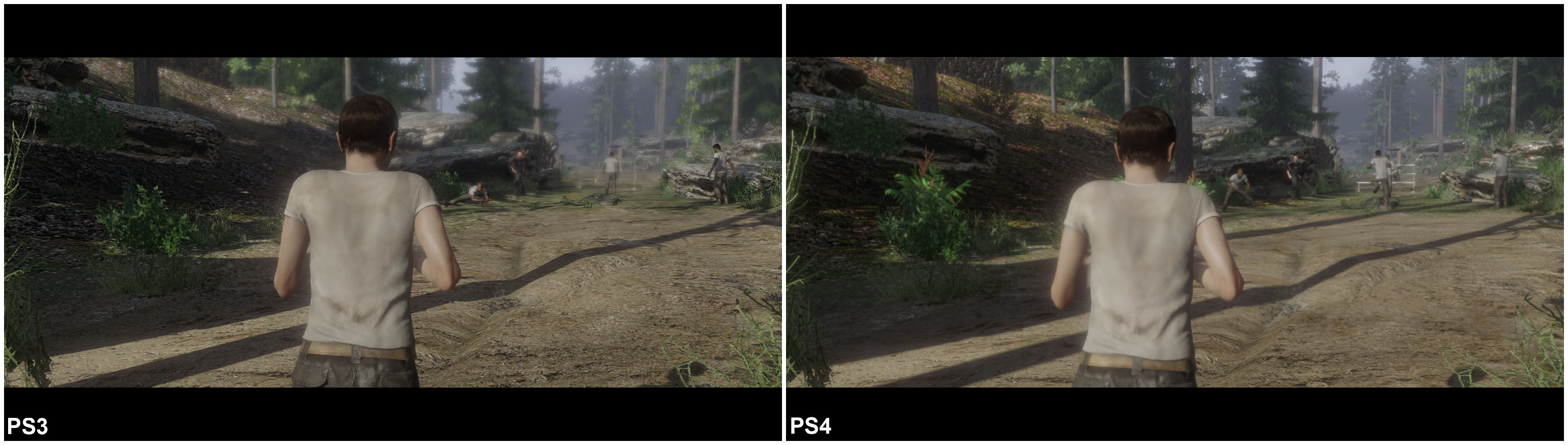 Αλλά το βασικό πλεονέκτημα είναι τα βελτιωμένα γραφικά σε σχέση με την έκδοση του PS3. Στο PS4 όλα προβάλλονται σε υψηλότερη ανάλυση. Όχι βέβαια σε 1080p, αλλά σε 1920 x 817, λογικό, αφού το κάδρο είναι 2,35:1 (όπως στο The Order: 1886) και όχι 16:9,. Πρόκειται για πιο “κινηματογραφική” αναλογία αλλά στην πραγματικότητα είναι επιλογή που έγινε για να πιεστεί λιγότερο το PS3. Έστω κι έτσι, πρόκειται για μεγάλη βελτίωση σε σχέση με την πρώτη έκδοση που, συν τοις άλλοις, υπέφερε από τη χρήση post-process MLAA που δεν αντιμετώπιζε ολοκληρωτικά το aliasing. Η αλλαγή σε τεχνική που προσεγγίζει το FXAA, φέρνει πολύ καλύτερα αποτελέσματα στο PS4, με λιγότερο shimmering σε textures με υψηλή αντίθεση αλλά και μειωμένο pixel crawl. Θα θέλαμε πάντως να έχουμε την επιλογή να τρέξουμε το παιχνίδι σε αναλογία 16:9.