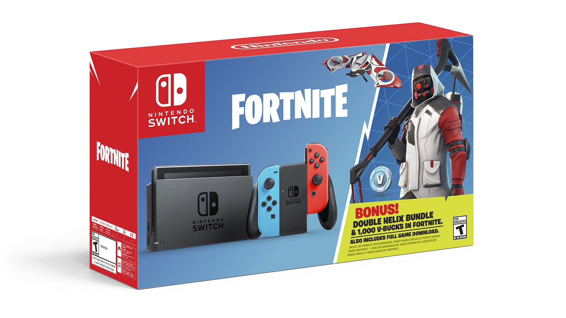 Η επιτυχία του Fortnite συνεχίζεται για τα καλά και μετά το ειδικό bundle για το PlayStation 4, ήρθε η ώρα για το Nintendo Switch. Η Nintendo θα κυκλοφορήσει ένα bundle με ειδικά αντικείμενα για το Fortnite στις 5 Οκτωβρίου. Το πακέτο θα κοστίζει $299. Το Switch Fortnite Double Helix bundle θα περιλαμβάνει μια κονσόλα Switch, 1000 V-bucks, καθώς και το Double Helix Set, το οποίο περιλαμβάνει μια μοναδική στολή χαρακτήρα, ένα Back Bling, ένα Glider και ένα Pickaxe. Τα συμπεριλαμβανόμενα V-Bucks μπορούν να χρησιμοποιηθούν για αγορά Battle Pass ή άλλων αντικειμένων μέσα στο παιχνίδι.
