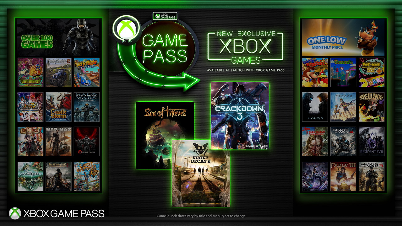Το διαφημιστικό υλικό αναφέρει τα Sea of Thieves, Crackdown 3 και State of Decay 2, αλλά θα καλύπτει και όλα τα επόμενα σημαντικά games για τα franchises που διαχειρίζονται τα Microsoft Studios, όπως τα Halo, Forza και Gears of War. Η συνδρομή στο Xbox Game Pass θα έχει πλέον ακόμη μεγαλύτερο νόημα, αφού από τις 20 Μαρτίου θα ξεκινήσει αυτή τη νέα σημαντική κίνηση με το Sea of Thieves.