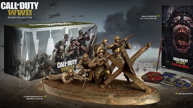 Sledgehammer Games και Activision αποκάλυψαν το περιεχόμενο της συλλεκτικής εκδόσης του Call of Duty: WWII. Θα υπάρχουν δύο εκδοχές, η μια είναι η Valor Collection Standard και η άλλη η Valor Collection Pro. Πιο συγκεκριμένα, η Standard έκδοση θα περιλαμβάνει το παιχνίδι, steelcase, ένα αγαλματίδιο, ένα Nazi Zombies poster, ένα συλλεκτικό Bloodraven sword pin και patches από τα 5 Divisions του τίτλου. Από την άλλη, η έκδοση Pro θα περιλαμβάνει όλα τα παραπάνω, συν το season pass, καθώς και μερικά έξτρα "καλούδια". Ο τίτλος κυκλοφορεί στις 3 Νοεμβρίου για PS4, Xbox One και PC, ενώ όσοι προβούν σε προ-παραγγελία θα έχουν τη δυνατότητα να λάβουν μέρος στη private beta που θα διεξαχθεί από τις 28 Αυγούστου έως και τις 4 Σεπτεμβρίου.