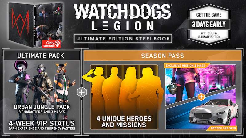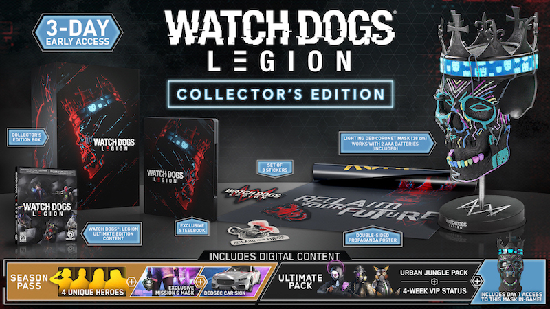Περιεχόμενα: Τίτλος, όλα τα preorder bonuses, 3 ημέρες early access, Season Pass, VIP Status 4 εβδομάδων, Urban Jungle Pack, in game mask, “φυσική” μάσκα 38 εκατοστών, Steelbook, συλλεκτική συσκευασία, διπλή αφίσα, τρία αυτοκόλλητα.