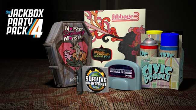 Η Jackbox Games ανακοίνωσε την ημερομηνία κυκλοφορίας για το The Jackbox Party Pack 4. Το πακέτο αναμένεται να διατεθεί στις 17 Οκτωβρίου για PS4, στις 18 Οκτωβρίου για Apple TV (μόνο για την τέταρτη γενιά), στις 19 του ιδίου μήνα για Nintendo Switch, PC, Mac, Android TV, Amazon Fire TV, NVIDIA Shield και τέλος στις 20 Οκτωβρίου θα κυκλοφορήσει και η έκδοση για το Xbox One. Τα νέα party games που θα έχουν τη δυνατότητα να απολαύσουν οι παίκτες θα είναι τα Fibbage 3, Survive the Internet, Monster Seeking Monster, Bracketeering και Civic Doodle.