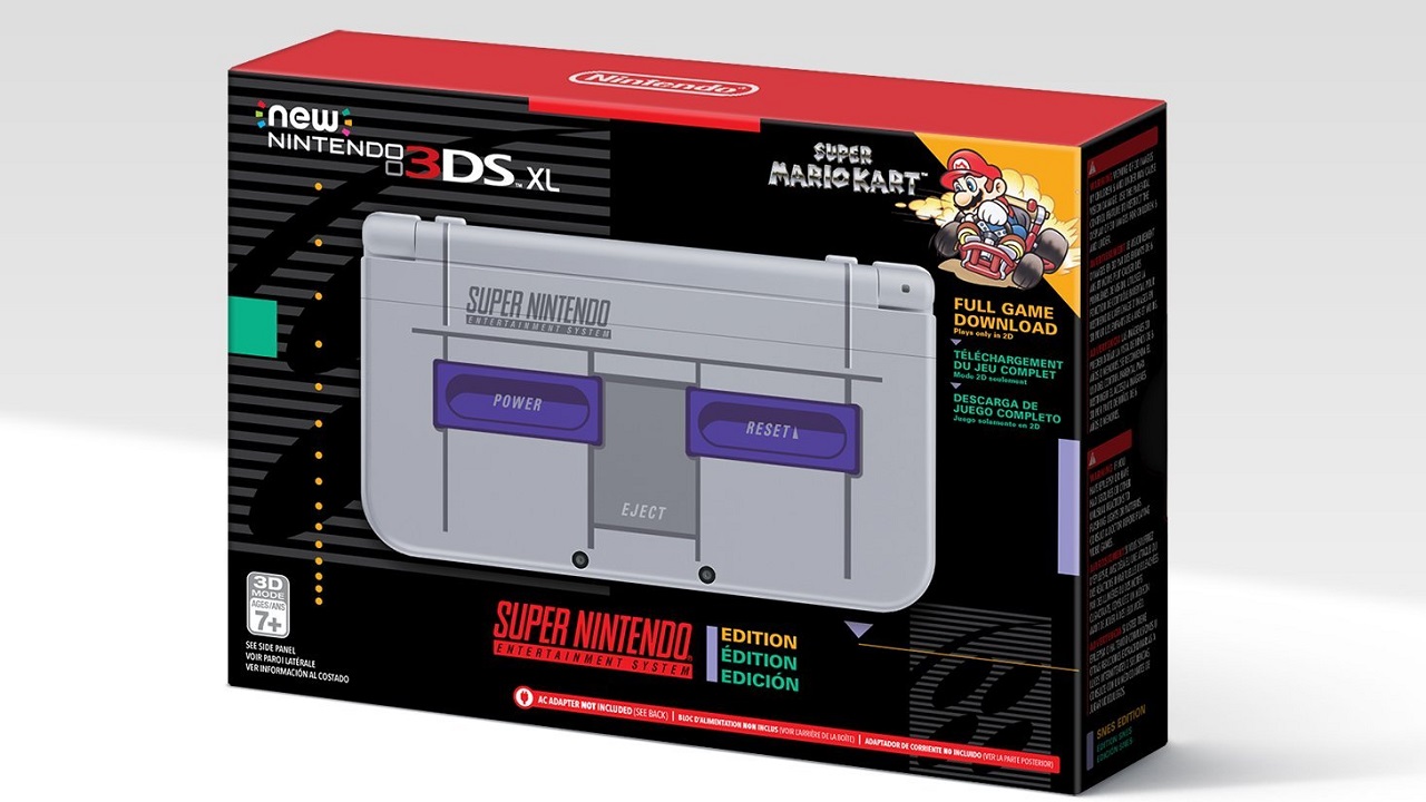 Όπως ανακοίνωσε η Nintendo, το SNES themed 3DS XL πρόκειται να κυκλοφορήσει στις αγορές της Β. Αμερικής στις 27 Νοεμβρίου και η τιμή του θα είναι $199,99. Ο σχεδιασμός θα είναι βασισμένος σε αυτόν του Αμερικάνικου SNES και εννοείται ότι θα διαφέρει τελείως από το αντίστοιχο ευρωπαϊκό μοντέλο. Επιπλέον, αν και κάτι τέτοιο δεν αποτελεί πλέον είδηση, θα πρέπει να αναφέρουμε ότι στη συσκευασία δεν θα περιλαμβάνεται φορτιστής, όμως θα υπάρχει ένας κωδικός για το Super Mario Kart. Πρόκειται για την τρίτη limited edition που αφορά το 3DS XL και κυκλοφορεί εντός του 2017. Είχαν προηγηθεί το μοντέλο με τη Samus που κυκλοφόρησε το Σεπτέμβριο με την ευκαιρία της διάθεσης του Metroid: Samus Returns και το Pikachu Yellow Edition 3DS XL, που κυκλοφόρησε στις αρχές του έτους.