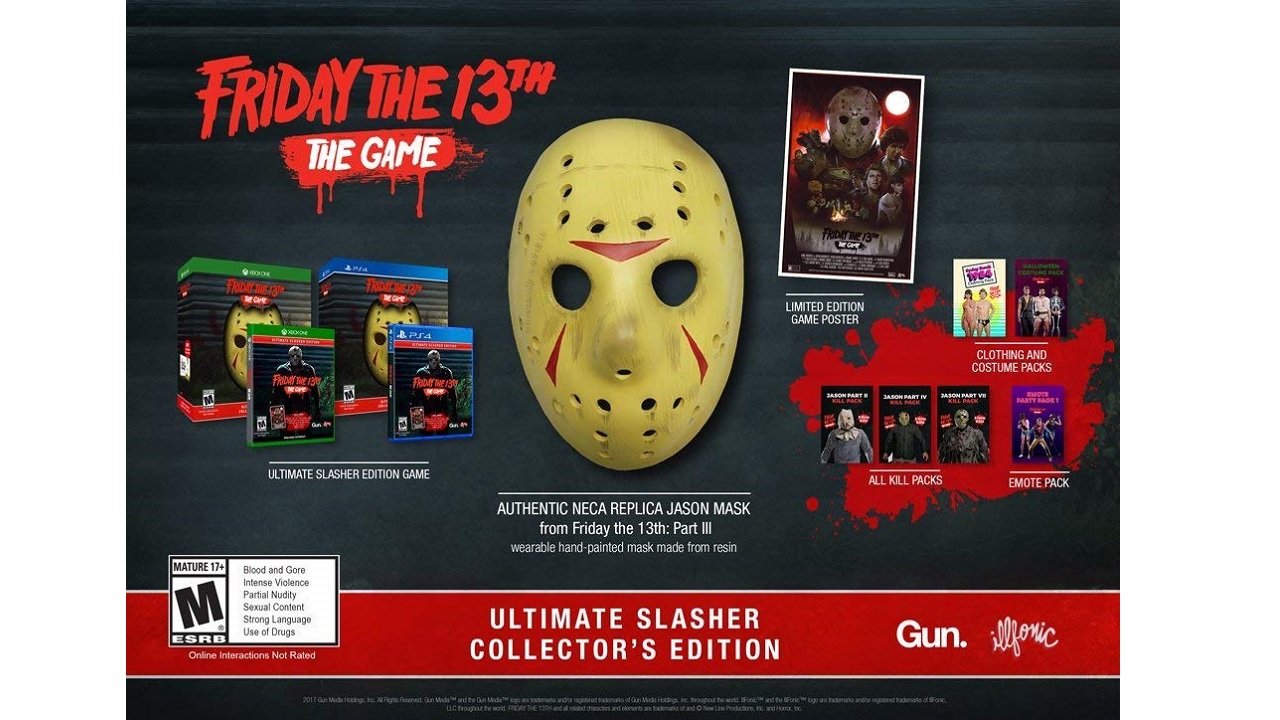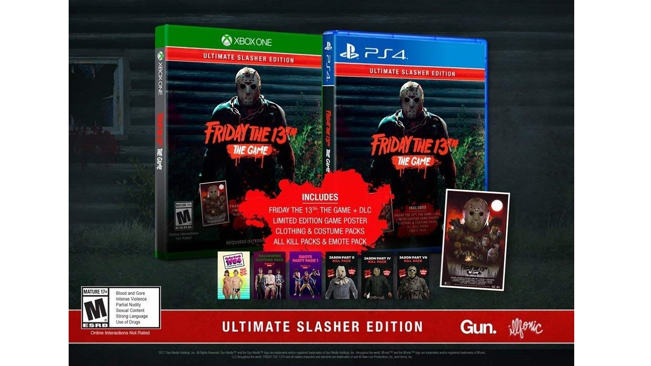 Η publisher Gun Media ανακοίνωσε δυο νέες φυσικές εκδόσεις για το Friday the 13th: The Game, που θα κυκλοφορήσουν για PlayStation 4 και Xbox One στις 4 Σεπτεμβριου 2018. Η πρώτη είναι η Ultimate Slasher Edition, που κοστίζει $39,99 και εκτός από το παιχνίδι περιλαμβάνει όλα τα DLC εκτός του “Savini Jason” skin και clothing pack που είναι αποκλειστικό "προνόμιο" όσων υποστήριξαν την καμπάνια του τίτλου στο Kickstarter και ένα Limited Edition poster. Η δεύτερη είναι Ultimate Slasher Collector’s Edition, που έναντι $69,99, προσφέρει ότι και η Ultimate Slasher Edition συν ένα replica wearable resin μοντέλο της μάσκας του Jason Voorhees, που βασίζεται στην αμφίεσή του στο Friday the 13th: Part III.