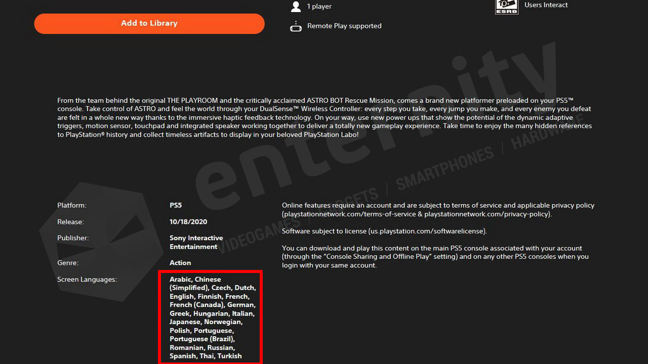 Το πρώτο παιχνίδι που θα είναι επιβεβαιωμένα στα ελληνικά είναι το Astro’s Playroom.