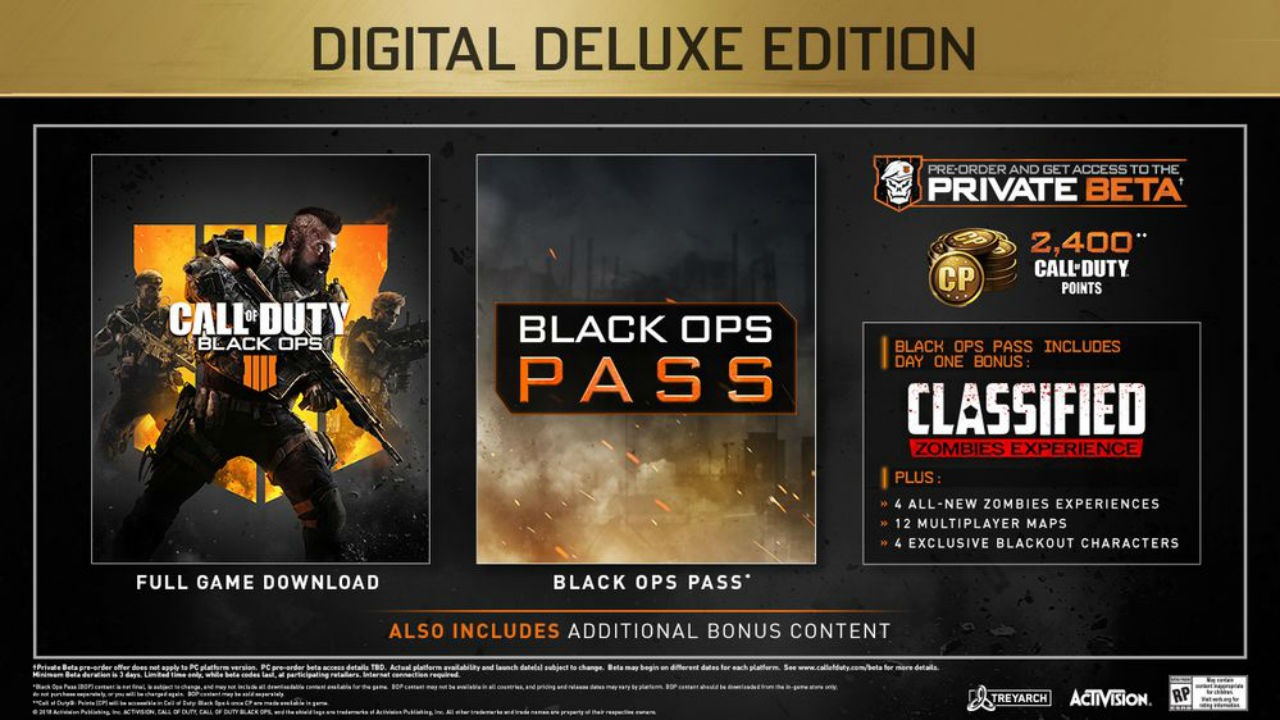 Η Digital Deluxe Edition θα περιλαμβάνει τον κωδικό για να κατεβάσετε το παιχνίδι, το Black Ops Pass, μια σειρά από ψηφιακά αντικείμενα και 2.400 Call of Duty Points.