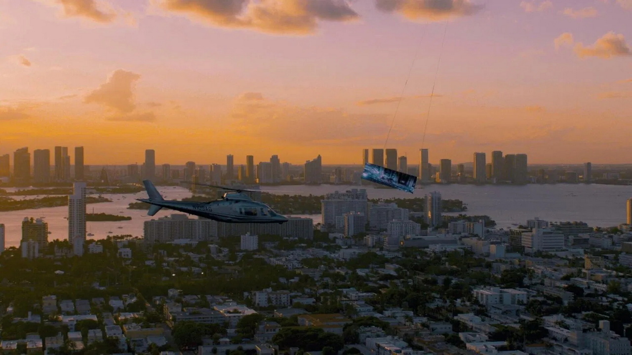 Η έμπνευση του θεαματικού εγχειρήματος ήρθε κατευθείαν από τη μυθολογία του παιχνιδιού: ένα μελλοντικό Τόκιο που έχει χτιστεί κάθετα, με ουρανοξύστες να υψώνονται πάνω από πλημμυρισμένα ερείπια, αντανακλώντας τη φουτουριστική αισθητική και την αίσθηση ύψους του Ninja Gaiden 4. Με χρήση προηγμένης τεχνολογίας μετάδοσης, το Xbox μετέδωσε την εικόνα από το cockpit του ελικοπτέρου στο γιγαντιαίο ιπτάμενο πανί που είχε σχεδιάσει η αεροπορική εταιρεία Heli-D, μετατρέποντας τον ουρανό της πόλης σε κινηματογραφική σκηνή. Κάθε επίθεση, κάθε counter, κάθε γρήγορη εναλλαγή με τον Yakumo -τον νέο πρωταγωνιστή και μέλος της Raven Clan- αποτυπωνόταν στην αχανή οθόνη σαν φόρος τιμής στη φιλοσοφία της σειράς: δεξιοτεχνία, ταχύτητα και απόλυτος έλεγχος της μάχης.