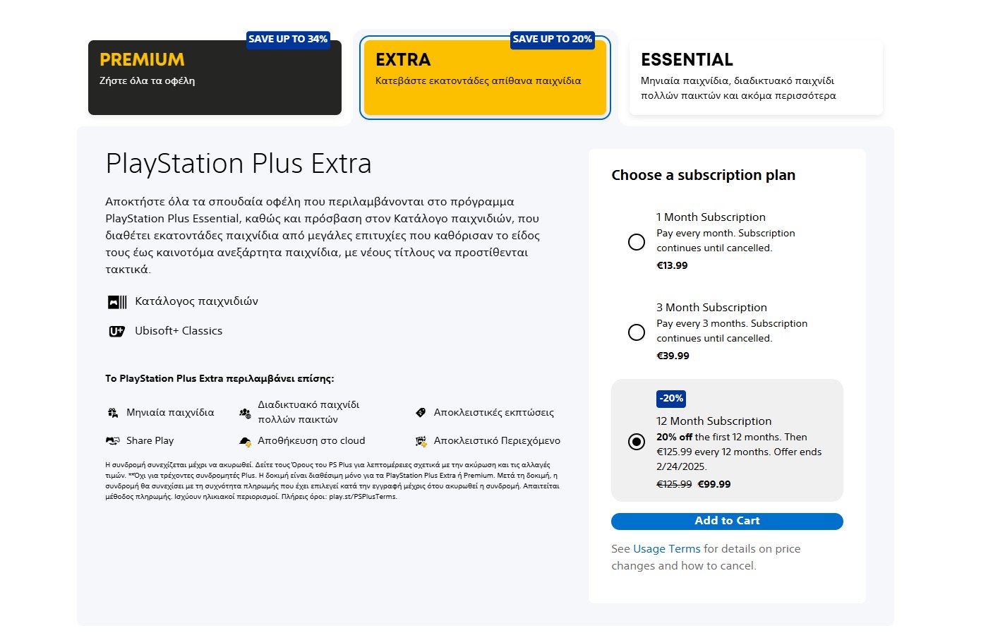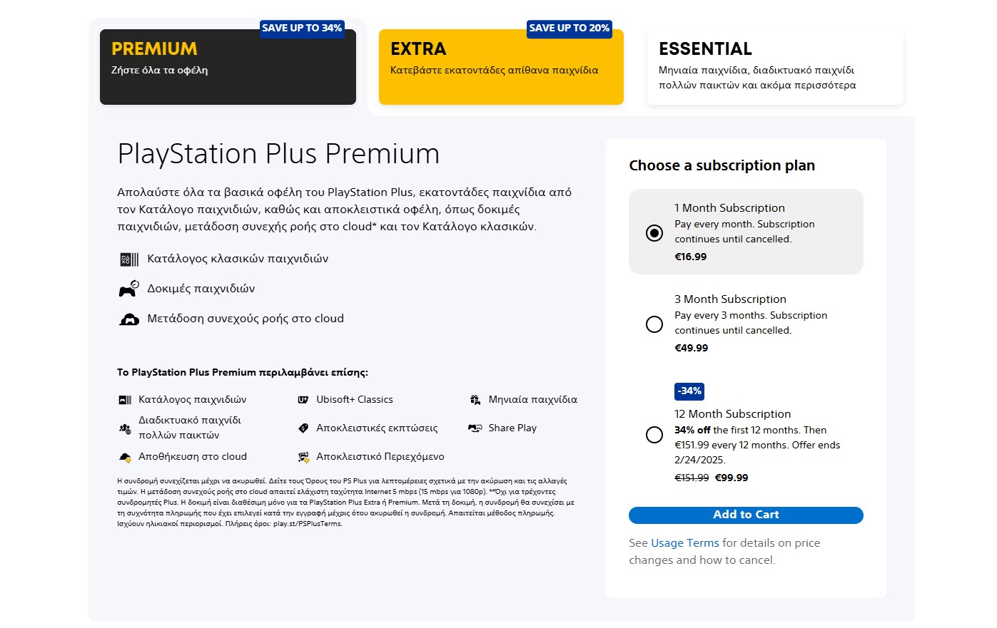 Στα του PS Plus Premium, η τιμή του μήνα και του τριμήνου παραμένει ίδια, ενώ η τιμή του ετήσιου πακέτου πάει από τα €151,99 στα €99,99.