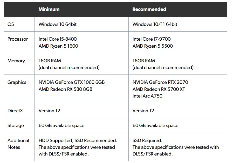 Προκειμένου να προετοιμαστείτε για το λανσάρισμά του, η Leenzee Games αποκάλυψε τις απαιτήσεις του soulslike, Wuchang: Fallen Feathers για PC. Τα προτεινόμενα specs περιλαμβάνουν επεξεργαστή Intel Core i7-9700 ή AMD Ryzen 5 5500, σε συνδυασμό με κάρτα γραφικών NVIDIA GeForce RTX 2070, AMD Radeon RX 5700 XT ή Intel Arc A750.
