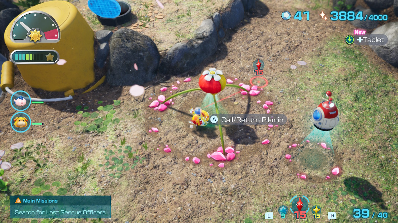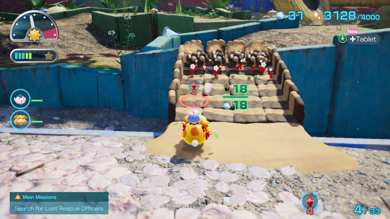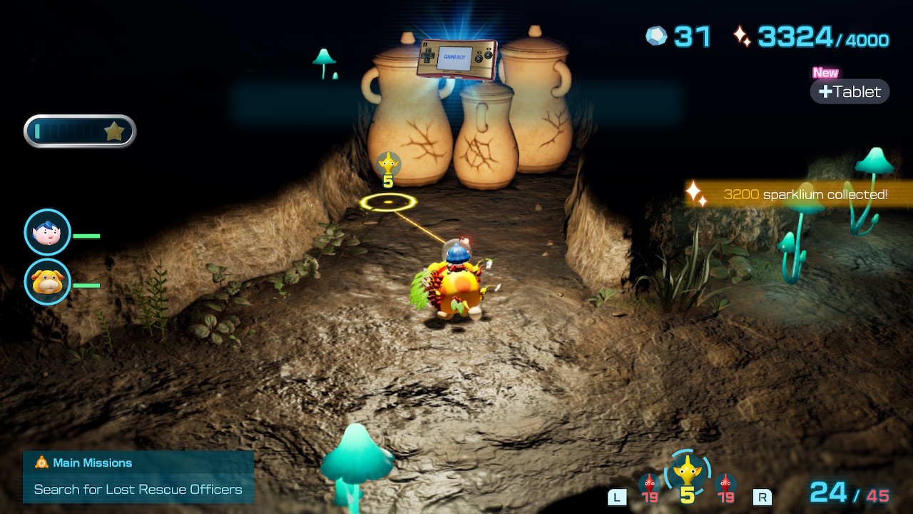 Όπως πάντα, οι πρωτάρηδες θα διευκολυνθούν αφάνταστα αν φροντίσουν να ενημερωθούν από πριν για τις δυνάμεις και τις αδυναμίες κάθε είδους Pikmin. Στις περιοχές που επιτράπηκε να επισκεφτούμε για χάρη του preview, συναντήσαμε τα κόκκινα, τα κίτρινα, τα μπλε και τα Ice Pikmin, που, σε συγκεκριμένες ομάδες, παγώνουν μικρές και μεγάλες λίμνες, ανοίγοντας νέους δρόμους για τα υπόλοιπα. Από εκεί και πέρα, θα κληθείτε να συλλέξετε μια σειρά από "θησαυρούς", όπως ρολόγια, μπάλες του γκολφ, κούκλες, πλαστικά καραβάκια, Game Boy Advance και διάφορα άλλα αντικείμενα, που θα μετατρέπονται σε Sparklium. Όσο περισσότερο έχετε, τόσο πιο δυνατό το ραντάρ του διαστημόπλοιού σας, άρα πρόσβαση σε πιο πολλές περιοχές.