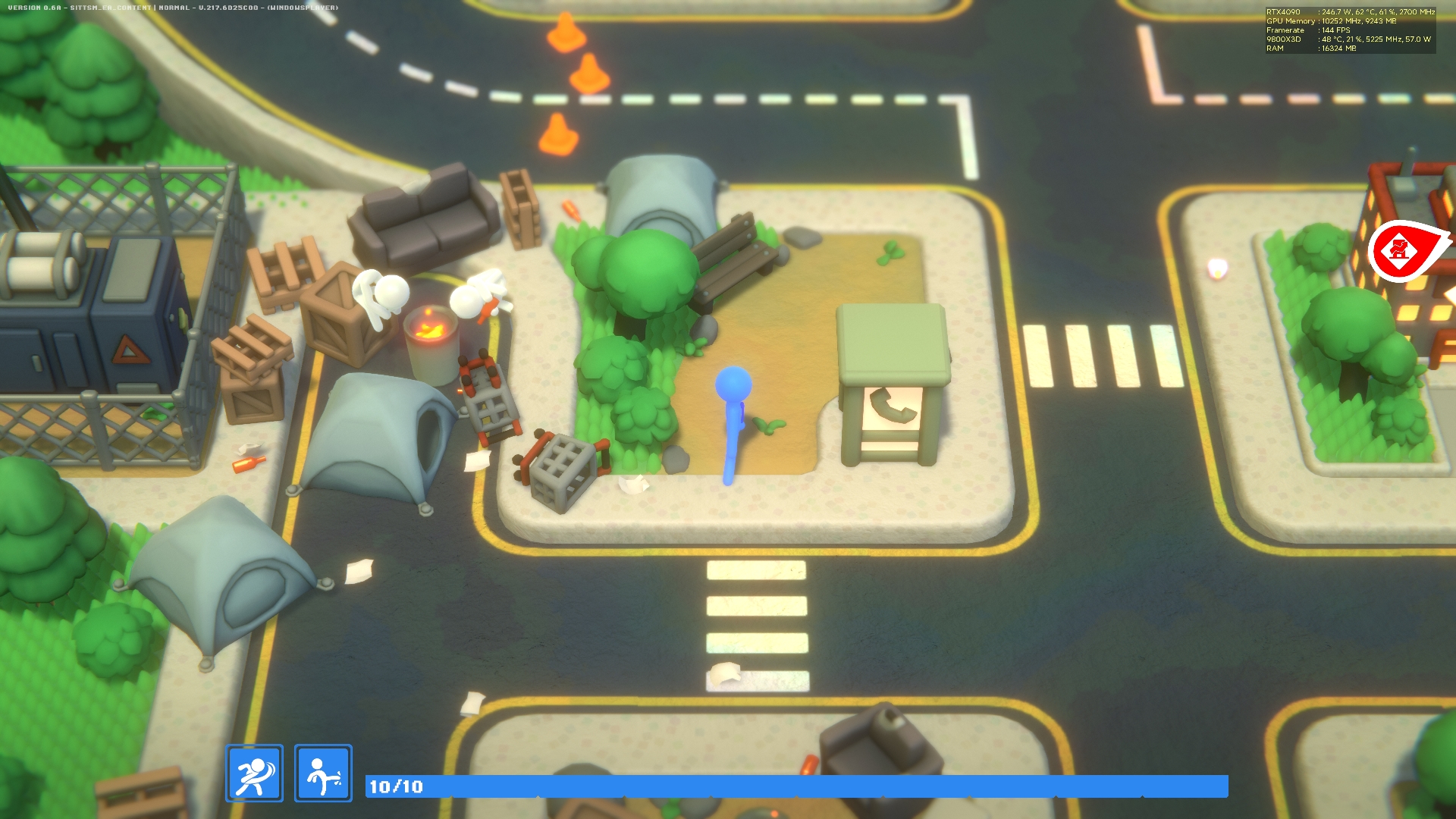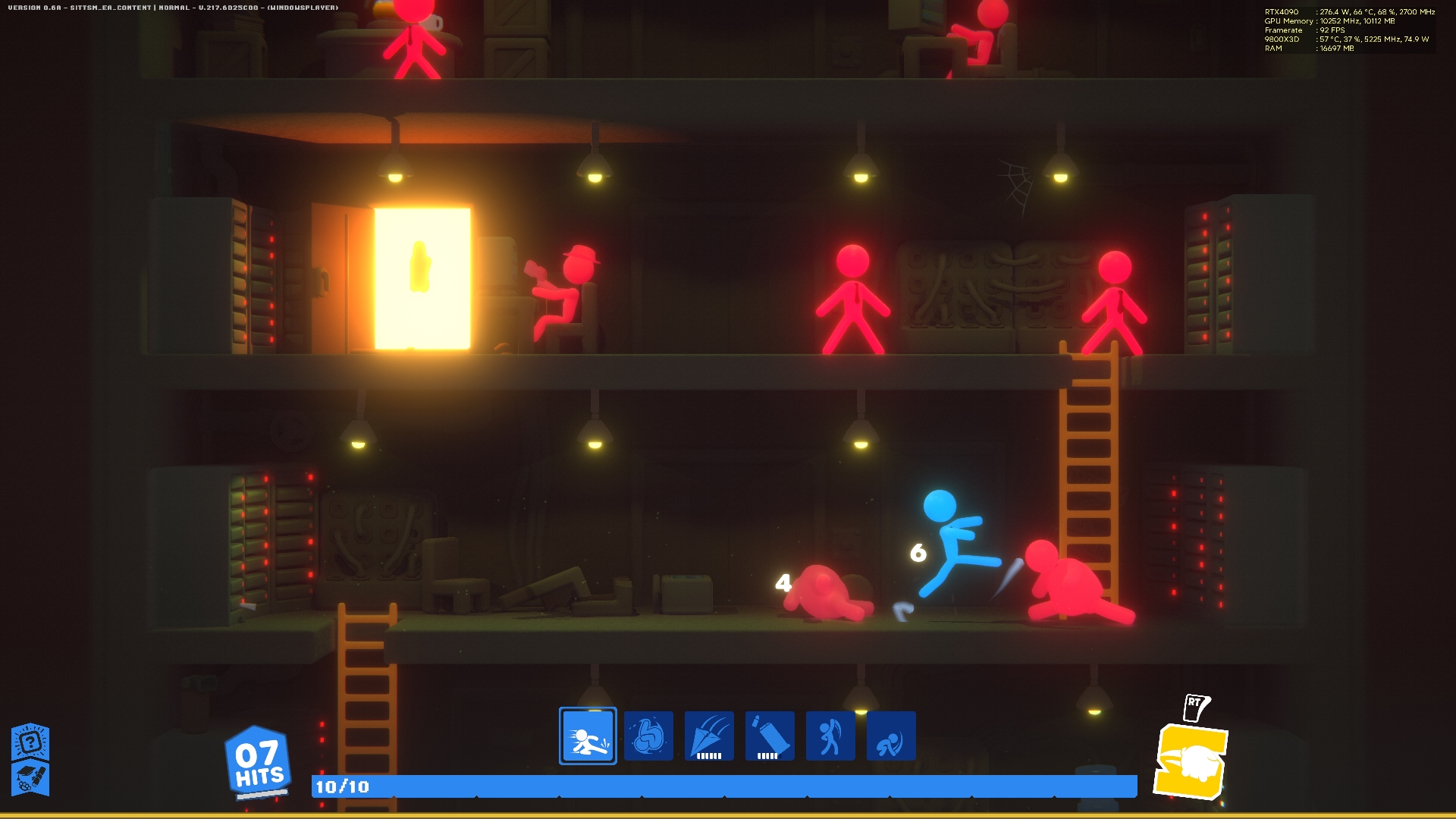 Οι χαρακτήρες είναι σχεδιασμένοι σαν απλά ragdolls, με μια αισθητική που θυμίζει παιδικό σκίτσο, αλλά αυτό δεν μειώνει σε τίποτα τη δυναμική του gameplay. Οι βασικές κινήσεις ξεκινούν απλά – μπουνιές και κλωτσιές – αλλά έχεις τη δυνατότητα να αναβαθμίσεις ή να προσθέσεις νέες επιθέσεις στο “σερί” του χαρακτήρα σου όσο βρίσκεσαι μέσα σε ένα κτήριο και προσπαθείς να φτάσεις στη κορυφή του.