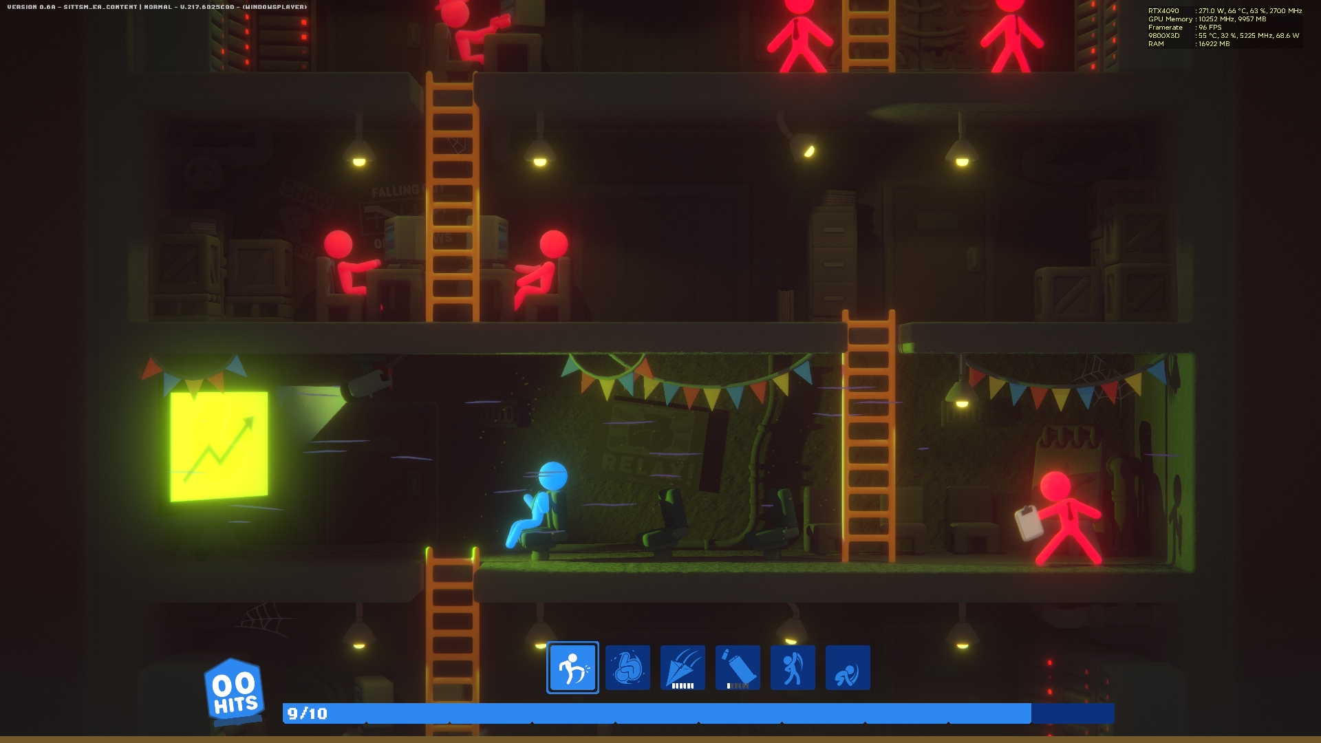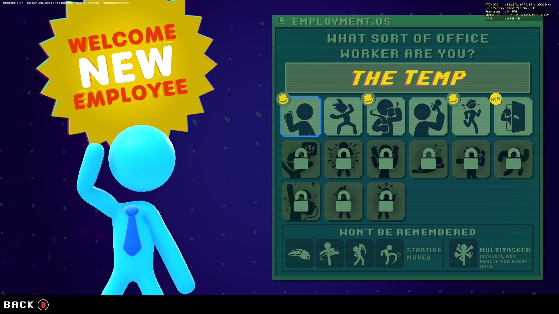Κάθε προσπάθεια ξεκινά με έναν απλό εργαζόμενο που προσπαθεί να ανέβει την ιεραρχία του κτιρίου. Αν καταφέρεις να φτάσεις στην κορυφή και να εκθρονίσεις τον CEO, το επόμενο run ξεκινά με έναν νέο υπάλληλο που θέλει με τη σειρά του να ανέβει. Με αυτόν τον τρόπο, το παιχνίδι κρατά το gameplay φρέσκο και συνεχίζει να προσφέρει κίνητρο, καθώς ξεκλειδώνονται νέοι τύποι «υπαλλήλων» που έχουν διαφορετικό skill set επιθέσεων.