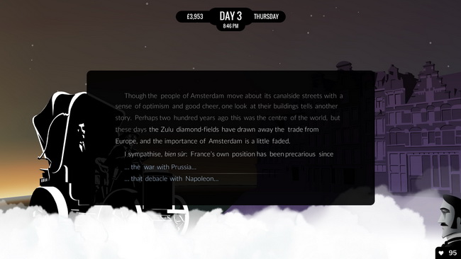 Αποτελεί άξιο αναφοράς το γεγονός ότι, βάσει του open world design του παιχνιδιού, η ιστορία μπορεί να αλλάξει ανάλογα με τις επιλογές που έχει κάνει ο παίκτης έως κάθε σημείο ανάλογα ακόμα και με το τι έχει μέσα στη βαλίτσα του. Σε ένα από τα ταξίδια μας στην Tabatinga της Νότια Αμερικής, ένα καρτέλ ανθρακωρύχων μας κυνηγούσε μανιωδώς γιατί μέσα στη βαλίτσα μας είχαμε ένα διαμάντι με σκοπό την μεταπώληση στο Timbuktu. Αλλά παρόλο που ξεφύγαμε στο λιμάνι του Belem, εμπιστευτήκαμε μια γριούλα με αποτέλεσμα να μας δηλητηριάσει εκβιάζοντάς μας μέχρι να επιστρέψουμε το διαμάντι. Δεν χρειάζεται να αναφέρουμε φυσικά τι θα γινόταν αν δεν είχαμε αγοράσει το εν λόγω αντικείμενο. Τα γραφικά του παιχνιδιού είναι πανέμορφα διαφυλάσσοντας το ύφος της βικτοριανής εποχής παντρεμένο με το sci-fi φιλοτεχνημένα από τον Jaume Monserrat. Χαρακτήρες, τοπία αλλά και πόλεις με έντονες μολυβιές προσδίδουν ρετρό γεύση ενώ συμφωνούν με την απλότητα του interface αλλά και τη γενική «μαγεία» του παιχνιδιού.