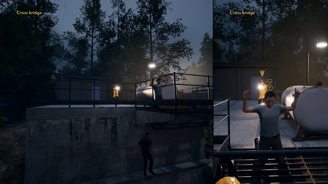 Σε όρους gameplay λοιπόν μιλά απλή και εύκολη γλώσσα για τον καθένα. Δεν είναι τίτλος που θα σας παιδέψει με τη δυσκολία του ή θα συναρπάσει με τον έναν ή τον άλλο μηχανισμό του. Συνδυάζει shooting, κυνηγητά, περιστασιακές αναφορές σε άλλα είδη gameplay, όλα όμως ως σκηνοθετικά εργαλεία. Η σκηνοθεσία σίγουρα ξεχωρίζει. Με ελάχιστες εξαιρέσεις η οθόνη χωρίζεται δυναμικά στα δύο, ανάλογα με τις ανάγκες του πλάνου με τους δύο παίκτες να κινούνται ελεύθερα στη μεριά τους. Λίγη εξερεύνηση χωρά εδώ κι εκεί πριν ακολουθήσει κανείς την αόρατη αλλά προφανή γραμμή των εξελίξεων. Ωστόσο, θυμηθείτε, διαφορετικά μοντέλα, περισσότερα assets, ακόμη και διαφορετικοί διάλογοι που τρέχουν παράλληλα (άχαρες οι στιγμές που ακούγεται ένας διάλογος έναντι ενός άλλου, όχι όμως όταν πρόκειται για κάτι πραγματικά σημαντικό), και τα πλάνα επιβιώνουν. Σε λίγες μόνο περιπτώσεις είδαμε κόμπιασμα της μηχανής και συνειδητοποιούμε βέβαια ότι το σχετικά περιορισμένο χρωματολόγιο είναι συνειδητή επιλογή που βοηθά τη διαχείριση της σκηνοθετικής αυτής επιλογής. Ακόμη και με την προσοχή χωρισμένη στα δύο η μετάβαση από σκηνή σε σκηνή γίνεται με ομαλό και μυαλωμένο τρόπο, ακόμη και πάνω στη δράση, υπογραμμίζοντας την πραγματική έγνοια των δημιουργών.