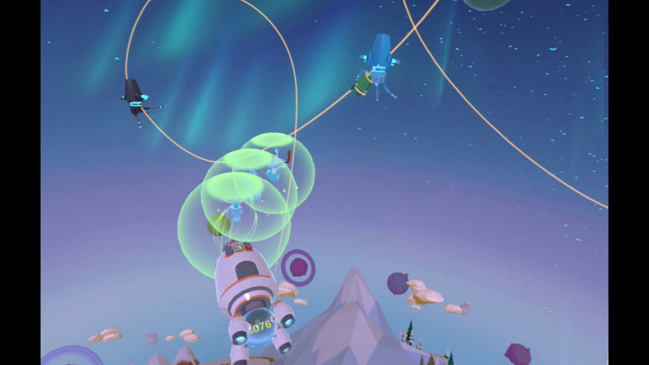 Γενικά πάντως, παρά τη χαριτωμένη καλλιτεχνική διεύθυνση, η βασική δραστηριότητα του παιχνιδιού καταφέρει να είναι και το χειρότερό του μέρος. Το καλύτερο; Για κάποιο λόγο, τα υπόλοιπα modes που εστιάζουν στο local PvP. Ένας παίκτης φορά headset φυσικά και οι υπόλοιποι στρέφονται στην κανονική οθόνη με χειριστήρια ανά χείρας. Σε ένα mode οι παίκτες προσπαθούν να «δραπετεύσουν» από επίπεδο μαζί με μερικά αγάλματα, την ώρα που ο παίκτης με το headset προσπαθεί να τους χαλάσει τα σχέδια. Η ορατότητα είναι εσκεμμένα περιορισμένη, ώστε οι άλλοι παίκτες να κρύβονται μέσα στο επίπεδο ενώ ο ένας αλλάζει γωνίες λήψης για να καταφέρει να τους βρεις και να τους ρίξει ό,τι έχει. Σε ένα ακόμη όποιος είναι με το χειριστήριο προσπαθεί να βάλει αρκετούς ανθρώπους στη σειρά ώστε να του επιτραπεί να τους βάλει σε διαστημόπλοιο για να δραπετεύσουν. Ο κολλημένος στο headset εκτοξεύει επιπλέον ανθρώπους διαφόρων ειδών, με στόχο να φτιάχνει τριάδες από όμοια είδη. Αυτές οι τριάδες εξαφανίζονται, α λα Zuma, και χαλάνε λίγο λίγο τα πλάνα του άλλου παίκτη. Το τρίτο mode είναι μάλλον και τι πιο αστείο, καθώς όσοι κρατούν χειριστήριο ελέγχουν ανθρώπινους χαρακτήρες που συνυπάρχουν στο επίπεδο με άλλους που ελέγχονται από AI. Οι παίκτες πρέπει να κινηθούν με τέτοιο τρόπο ώστε να μη κινούν υποψίες, καθώς ο παίκτης με το headset προσπαθεί να καταλάβει ποιος είναι κανονικός παίκτης και ποιος όχι για να τον τσακώσει στα πράσα.