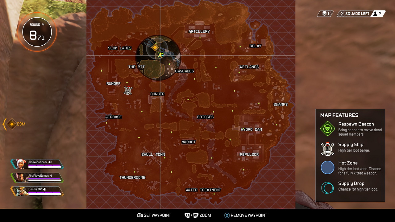 Τέλος, επειδή ακριβώς στα BR ο χρόνος είναι χρήμα, κάθε περιοχή φέρει την αντίστοιχη ένδειξη στο HUD των παικτών, με το τι είδους loot θα συναντήσουν (mid/high-tier κ.λπ.), ούτως ώστε να γνωρίζουν αν οι πιθανότητες είναι με το μέρος τους αν αποφασίσουν να ψάξουν εξονυχιστικά και αν αξίζει το ρίσκο η ανταμοιβή. Η «κουβέντα» ανάμεσα στους χαρακτήρες είναι πάντα χρήσιμη αφού έτσι υπάρχει ενημέρωση για το αν η αντίπαλη ομάδα έχει βγει οριστικά εκτός διεκδίκησης, αν υπάρχει ακόμα κάποιος επιζών ή, για παράδειγμα, πόσοι παίκτες απομένουν στο παιχνίδι. Το HUD όπως προαναφέρθηκε επίσης προσφέρει τα μέγιστα στην εποπτεία της κατάστασης, ενώ ιδιαίτερα ενδιαφέρουσα είναι και η ένδειξη των παικτών που απομένουν, η οποία όμως μετατρέπεται σε ερωτηματικό όταν οι ομάδες είναι λιγότερες από τέσσερις.
