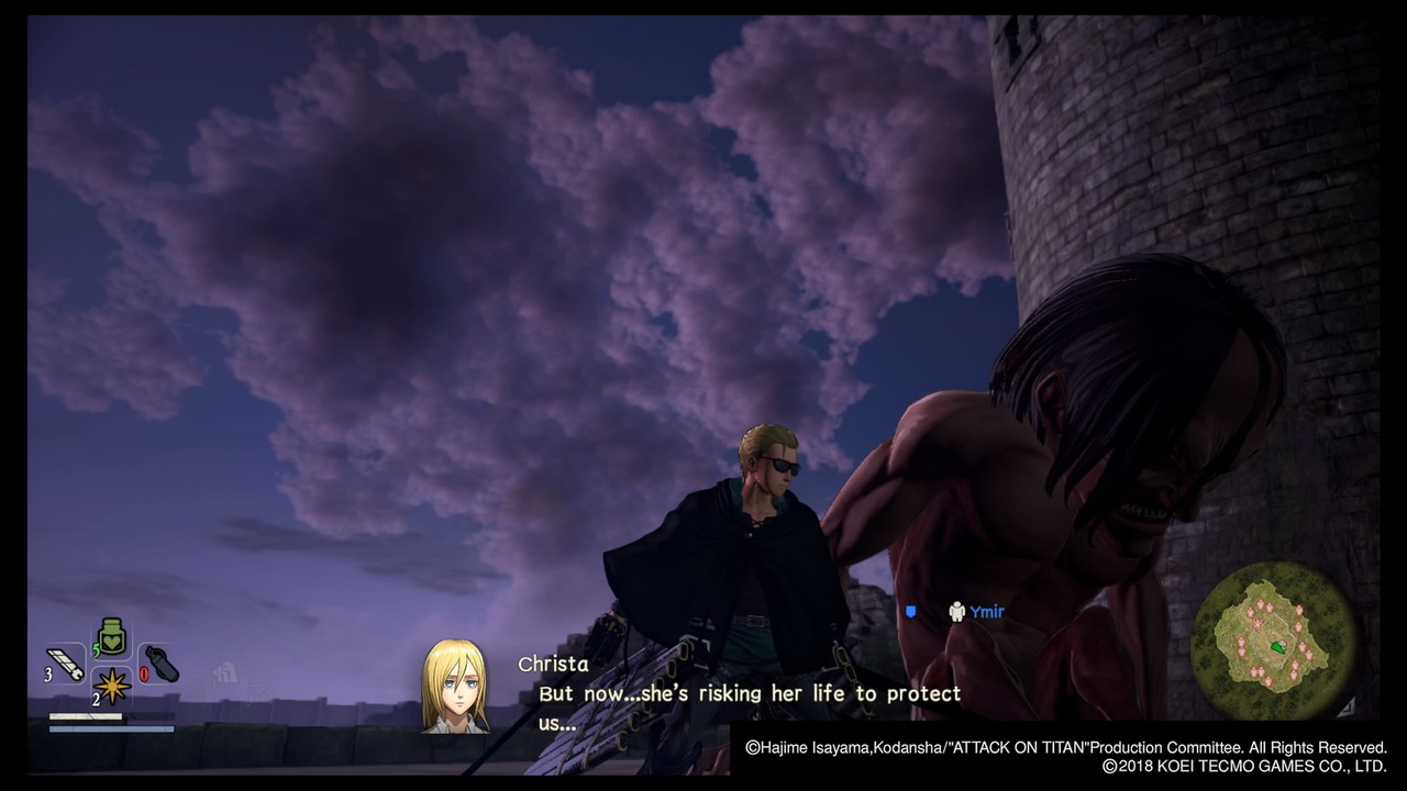 Αυτήν τη φορά ο παίκτης δημιουργεί ένα δικό του, καινούριο χαρακτήρα και βλέπει την ιστορία που εξελίσσεται στο anime μέσα από τα μάτια του, όμως το πρώτο δυσάρεστο που παρατηρεί κανείς είναι ότι πρέπει να ξαναζήσει σε μεγάλο ποσοστό τα γεγονότα της πρώτης σεζόν, όπως ακριβώς και στον προκάτοχο του Attack on Titan 2. Μιλάμε για επανάληψη quests, ακόμα και cut-scenes, οπότε δεν θα ήταν τελείως κακοπροαίρετο να χαρακτηρίσει κανείς το νέο παιχνίδι της Omega Force…Attack on Titan 1,5. Τα όσα συνέβησαν μάλιστα στην πρώτη περίοδο του anime καταλαμβάνουν περισσότερο χώρο στο παιχνίδι από όσα είδαμε στη δεύτερη σεζόν, πράγμα δικαιολογημένο μόνο σε ένα μικρό ποσοστό μιας και πρόκειται για τα θεμέλια μιας σειράς που φαινομενικά βρίσκεται στα ντουζένια της και αποτελούνται από ήδη κλασικές σκηνές για τους οπαδούς του είδους.