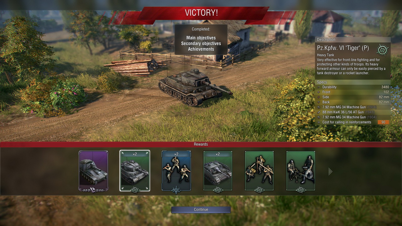 Κάθε περίοδος διαθέτει τις δικές της μονάδες, οι οποίες αρχικά είναι προπολεμικές και στο τέλος φτάνουν μέχρι τα πειραματικά σχέδια των Ναζί (όπως το τερατώδες Maus) και τα μεταπολεμικά των Συμμάχων (όπως το Σοβιετικό IS-3). Νέες μονάδες αποκτώνται εκπληρώνοντας αποστολές και επιτυγχάνοντας προαιρετικούς στόχους, κάνοντας level up στρατηγούς ή κερδίζοντας skirmishes. Η ποικιλία των μονάδων είναι ικανοποιητική και η κατηγοριοποίησή τους δεν είναι μόνο τεχνολογική, αλλά και ποιοτική, με τις ισχυρότερες μονάδες να είναι σπανιότερες. To παιχνίδι ακολουθεί τη χρωματική νόρμα των MMORPG για να διαχωρίσει τις ισχυρότερες από τις κοινές, με τις μοβ να είναι οι πιο σπάνιες και τις γκρίζες να αντιπροσωπεύουν τις πιο συνηθισμένες. Ωστόσο σε κάθε μάχη δεν μπορούμε να επιστρατεύσουμε περισσότερες μονάδες ενός τύπου από όσες έχουμε αποκτήσει. Με άλλα λόγια, αν έχουμε ξεκλειδώσει ένα και μοναδικό Katyusha, για παράδειγμα, και το χάσουμε στη μάχη, τότε δεν μπορούμε να το ξαναχρησιμοποιήσουμε μέχρι την επόμενη. Θα το επαναλάβουμε: οι περισσότερες μονάδες δεν είναι αναλώσιμες. Το γεγονός αυτό έχει σημασία και σε ένα multiplayer skirmish, καθώς μπορεί τα reinforcement points να ανανεώνονται όσο κρατάμε στην κατοχή μας τουλάχιστον ένα από τα τρία στρατηγικά σημεία, αλλά οι μονάδες μας δεν είναι ανεξάντλητες. Τουλάχιστον υπάρχει και μια εναλλακτική χρήση για τους πόντους αυτούς, που μπορούν να επενδυθούν σε εναέρια υποστήριξη, παραπετάσματα καπνού, αλεξιπτωτιστές ή βολές πυροβολικού σε κάποιο σημείο που ορίζουμε εμείς.