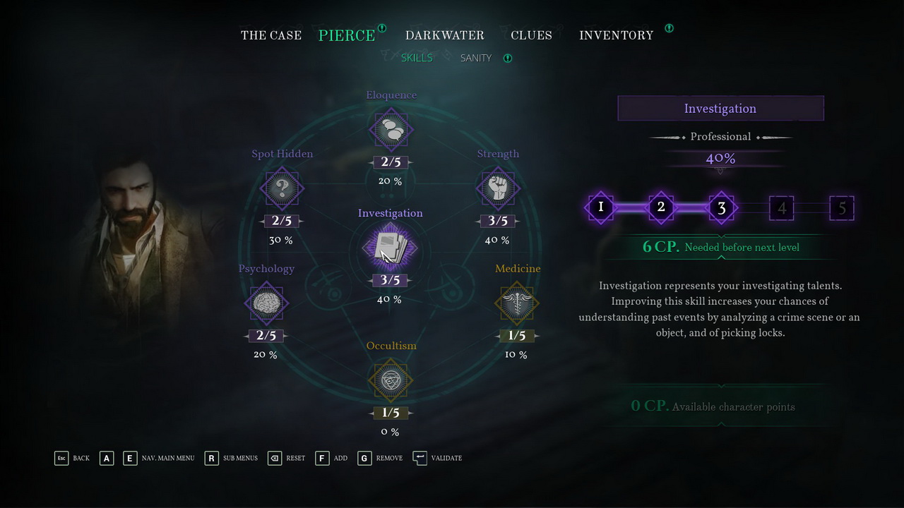 Και τα στοιχεία είναι ο στόχος στο μεγαλύτερο μέρος του παιχνιδιού. Ο πρωταγωνιστής πρέπει να λύσει ένα μυστήριο άλλωστε. Πράγμα που σημαίνει ότι ο τίτλος λειτουργεί περισσότερο ως adventure με προοπτική πρώτου προσώπου, όχι ως survival horror. Διάλογοι, γρίφοι, άλλοι ενδιαφέροντες και άλλοι μονοδιάστατοι είναι η αφορμή για μετακίνηση από περιοχή σε περιοχή, από εξέλιξη σε εξέλιξη. Το ενδιαφέρον εδώ είναι πως ενώ η διαδρομή αυτή είναι ουσιαστικά καθορισμένη, ο παίκτης έχει το περιθώριο να περάσει από τα ίδια κομβικά σημεία με διαφορετικό τρόπο. Αυτό εξαρτάται από την κατανομή των skill points. Καταχρηστικός ο χαρακτηρισμός των πόντων βέβαια. Κατανέμονται σε κατηγορίες που έχουν μεταφερθεί αυτούσιες από το επιτραπέζιο Call Of Cthulhu. Ρίξτε πόντους στην ψυχολογία και θα είναι ευκολότερο να κατανοήσει ο πρωταγωνιστής την κατάσταση στην οποία βρίσκεται ένας χαρακτήρας. Ρίξτε τους στο Spot Hidden και γίνεται ευκολότερο και πιθανότερο να εντοπίσετε αντικείμενα που ειδάλλως θα παρέμεναν κρυφά. Διαβάστε βιβλία ιατρικής και βελτιώστε γνώσεις που θα φανούν χρήσιμες και διαβάστε κείμενα περί μεταφυσικού για να ανοίξουν ορίζοντες που με τη σειρά τους οδηγούν σε νέες επιλογές σε διαλόγους. Εφόσον μιλάμε για μεταφορά επιτραπέζιου όμως, καμία επένδυση σε skill δεν εγγυάται συγκεκριμένο επίπεδο επιτυχίας στο skill check, όποτε αυτό προκύπτει. Στην ουσία η επένδυση βελτιώνει τις πιθανότητες για καλό αποτέλεσμα στη ζαριά που ρίχνει το σύστημα, χωρίς να βλέπει ο παίκτης τη διαδικασία. Οπότε μπορείτε κάλλιστα να τα δώσετε όλα το lockpicking και να μην καταφέρετε να ξεκλειδώσετε μια πόρτα που σας εμποδίζει. Δώστε τα όλα στο Spot Hidden και μπορεί ένα κρυφό αντικείμενο να μην υπάρχει καν στην πρώτη είσοδο στο χώρο και να εμφανιστεί με ένα «μπες βγες». Ή και το αντίθετο. Να το παραβλέψετε την πρώτη φορά ενώ το είδατε, να επιστρέψετε και να λείπει. Η προσομοίωση του επιτραπέζιου βγαίνει, σε γενικές γραμμές, σε κακό μιας και φαίνεται να γίνεται με το σκεπτικό να αποδοθούν όσοι περισσότεροι κανόνες του γίνεται, όχι απαραίτητα να αποδοθούν με τρόπο που να εξυπηρετούν ένα videogame. Πάντως το ότι κανείς ποτέ δεν ξέρει τι λένε τα ζάρια ταιριάζει τουλάχιστον με το κλίμα και ένα από τα αγαπημένα θέματα του H.P. Lovecraft: τον τρόμο του αγνώστου και του αβέβαιου.