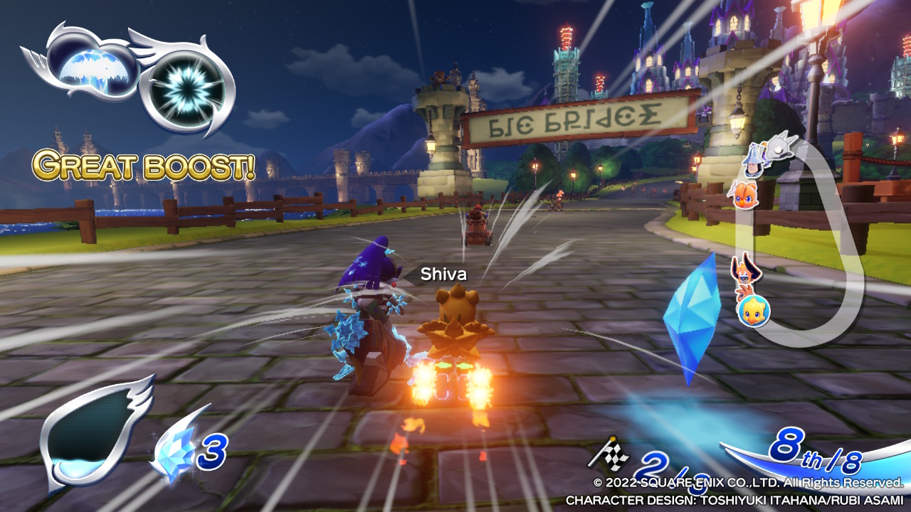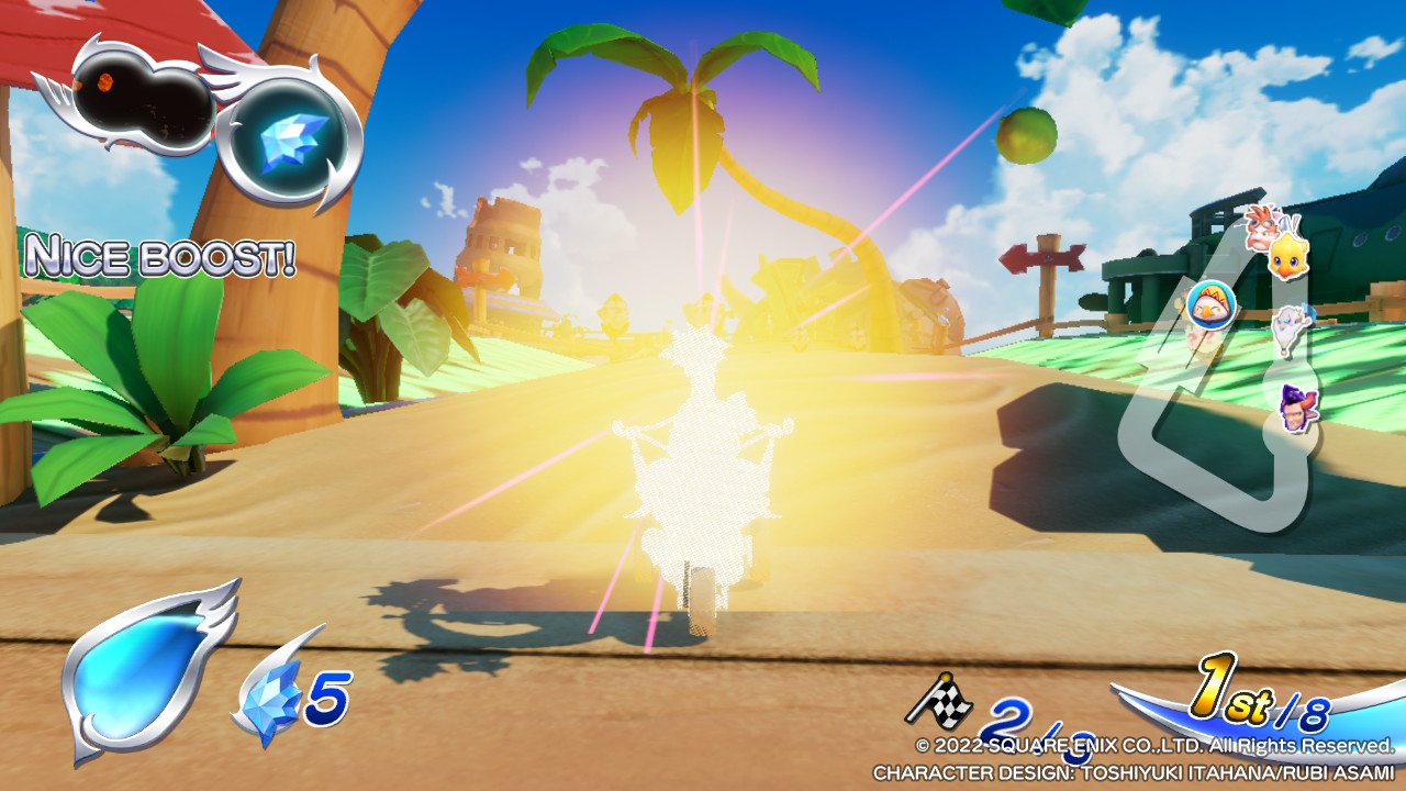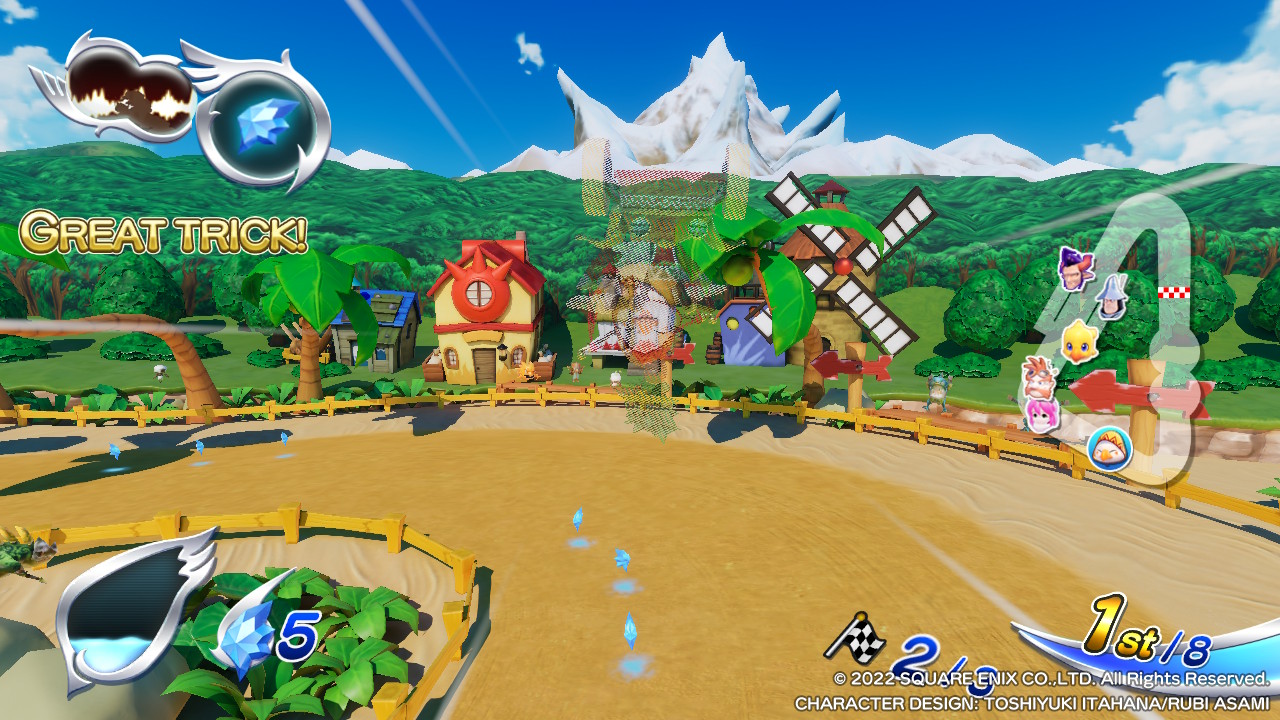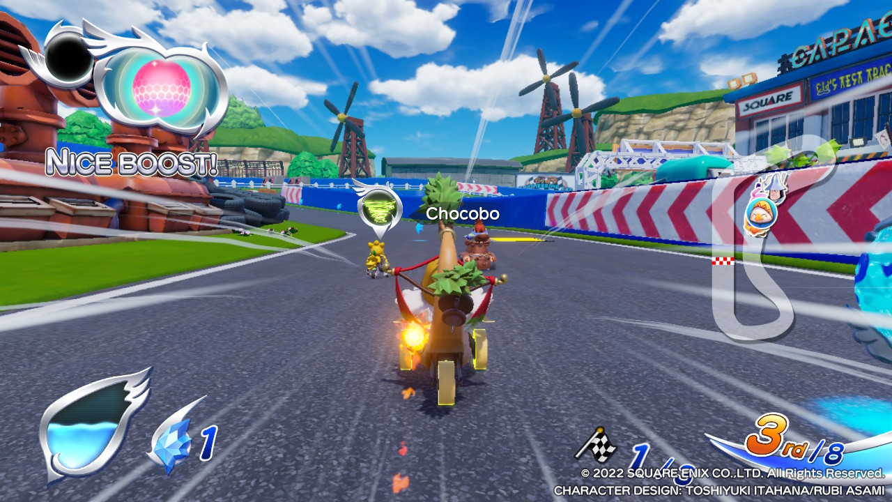 Για να μην σας παιδεύουμε με περιττές αναλύσεις, ουσιαστικά το Chocobo GP είναι ένας ακόμα κλώνος της σειράς Mario Kart, απλά σερβιρισμένος με διαφορετικό μανδύα. Δηλαδή, διαφορετικούς χαρακτήρες, οχήματα, power ups αλλά και Story Mode. Για το τελευταίο δεν θα πούμε ιδιαίτερα πράγματα, είναι άλλωστε τόσο αδιάφορο από πλευράς διαλόγων, τόσο ελλιπές από ουσία, που η ομάδα ανάπτυξης τοποθέτησε την επιλογή Skip σε περίοπτη θέση, θέλοντας προφανώς να είναι βέβαιη πως κανένας δεν θα την ψάχνει. Αναγκαίο κακό το story mode, δεν θα μπορέσετε να το αγνοήσετε καθώς ολοκληρώνοντας τις δοκιμασίες του θα αποκτήσετε πρόσβαση σε επιπλέον χαρακτήρες και οχήματα. Χαρακτήρες που είναι γνώριμοι στους φίλους της σειράς Final Fantasy, όπως το πανέμορφο Chocobo που έχει χαρίσει το όνομά του στον τίτλο.
