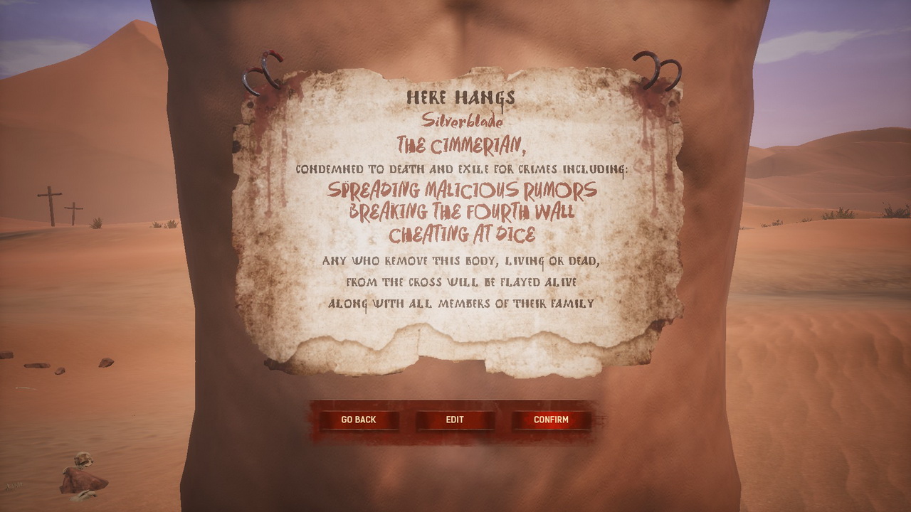 Φυσικά, όπως και σε κάθε παιχνίδι survival που σέβεται τον εαυτό του, ξεκινάμε χωρίς απολύτως τίποτα (ούτε καν ρούχα). Η πείνα, η δίψα και τα στοιχεία της φύσης είναι οι πρώτοι και πιο άμεσοι εχθροί μας. Καθώς μαθαίνουμε επί τροχάδην πώς να κατασκευάσουμε αυτοσχέδια ρούχα και όπλα από ίνες φυτών, ξύλα και πέτρες, παίρνουμε και μια πρώτη ιδέα για το αφιλόξενο αυτό μέρος και τα μυστικά τα οποία ενδεχομένως να κρύβει. Η πρώτη μεγάλη έκπληξη του τίτλου ωστόσο ήρθε από νωρίς στο Early Access, όταν οι παίκτες διαπίστωσαν πως όχι μόνο το Conan: Exiles επιτρέπει εντελώς γυμνούς χαρακτήρες, αλλά και ότι κατά τη δημιουργία τους υπήρχε η επιλογή καθορισμού μεγέθους στήθους, αλλά και...εξοπλισμού για τους άνδρες. Δεν έχουμε κάτι εναντίον του γυμνού, φυσικά, αλλά αυτό είναι κάτι που μπορεί να έχει και αναπάντεχες επιπτώσεις. Περισσότερα σε λίγο. Σε αντίθεση με το Minecraft και πολλά άλλα παιχνίδια του είδους, στο Conan Exiles δεν μας επιτρέπεται να σκάψουμε, αλλά μόνο να χτίσουμε, ενώ σύντομα διαπιστώνουμε ότι σχεδόν κανένας δεν είναι διατεθειμένος όχι να μας βοηθήσει, αλλά ούτε καν να μας μιλήσει. Έπειτα από δεκάδες ώρες παιχνιδιού καταφέραμε να βρούμε μόλις 3 NPCs που μιλάνε μαζί μας και μόλις μία πόλη όπου (σχεδόν) κανείς δεν είναι εχθρικός.