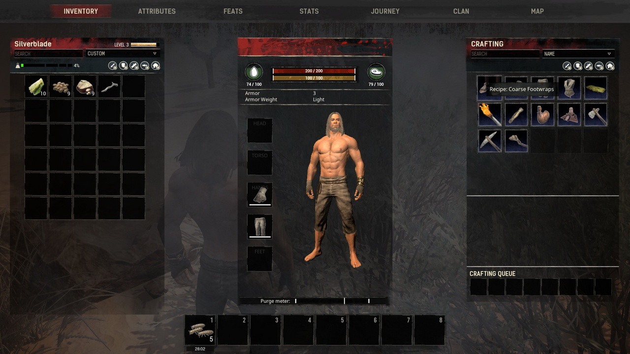 Μια και αναφερθήκαμε στο levelling, πρέπει να ξεκαθαρίσουμε ότι το Exlies είναι κατά βάση ένα survival RPG, καθώς ο χαρακτήρας μας κερδίζει επίπεδα εμπειρίας, τα οποία μεταφράζονται σε πόντους για να αυξήσουμε τα χαρακτηριστικά του, αλλά και Feats τα οποία είναι κατ' ουσία συνταγές για να κατασκευάσουμε διάφορα πράγματα, από τα πιο χρηστικά, όπως όπλα, εργαλεία και δομικά στοιχεία, έως τα πλέον διακοσμητικά, όπως τρόπαια και χαλιά. Οι πόντοι που επενδύουμε στα attributes του χαρακτήρα είναι καθοριστικής σημασίας για τον τρόπο παιχνιδιού μας, είτε επιλέξουμε τη μάχη σώμα με σώμα, είτε από μεσαία ή μεγαλύτερη απόσταση. Αυτό που παίζει σε κάθε περίπτωση βασικό ρόλο είναι το stamina, καθώς όλες μας οι κινήσεις σε άμυνα και επίθεση προϋποθέτουν τη χρήση του. Το ίδιο ισχύει και για το τρέξιμο, τα άλματα και την αναρρίχηση.
