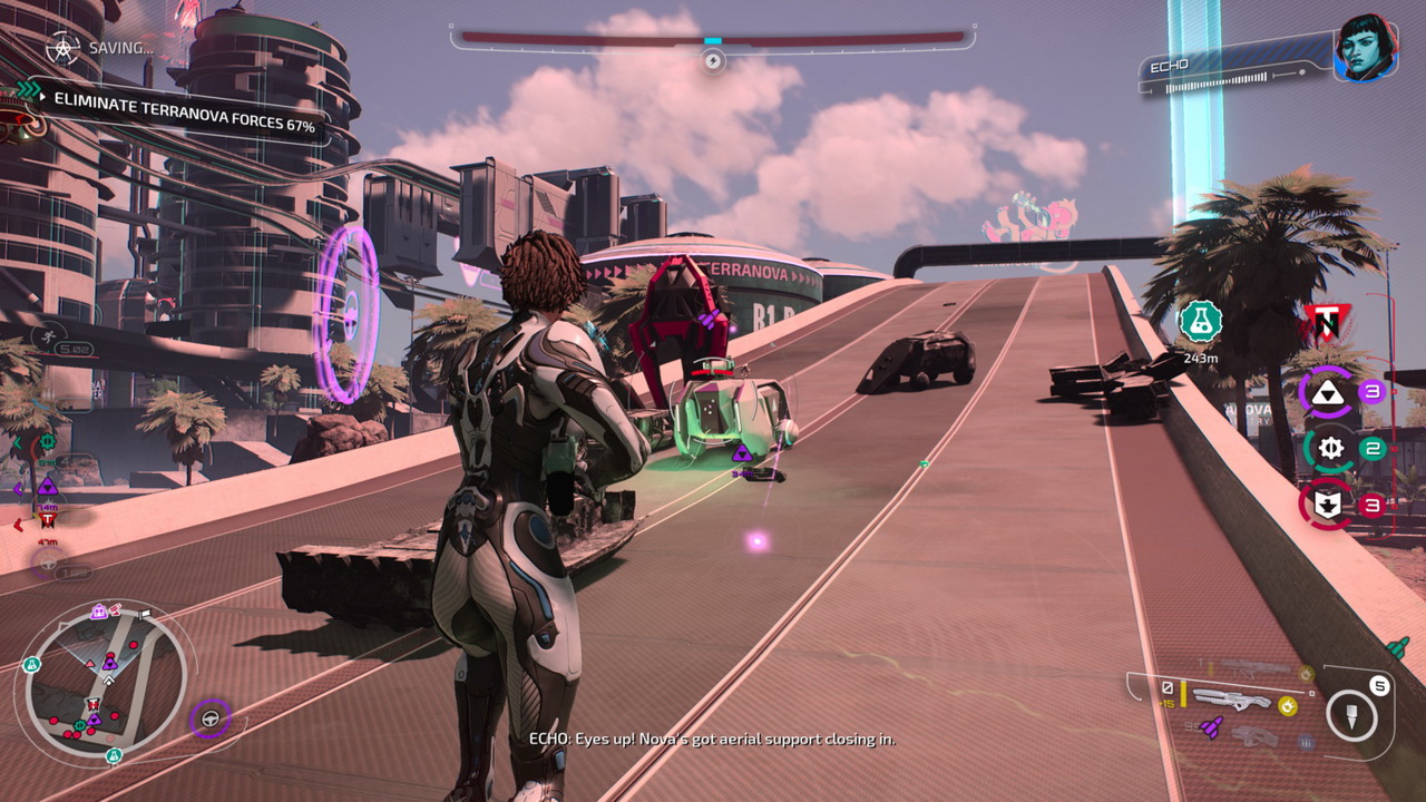 Πέραν της ιστορίας και των αποστολών αυτής, υπάρχει και μια σειρά από challenges που μπορούν να ολοκληρωθούν, με ανταμοιβή (τι άλλο;) orbs, και μικρά side-missions που βασίζονται κυρίως στην προσεκτική χρήση των μηχανισμών κίνησης και των ικανοτήτων πλοήγησης στον χώρο. Η αλήθεια είναι πάντως πως μετά το τέλος της ιστορίας το κίνητρο που δίνεται τόσο για τα challenges, όσο και για κάποιο δεύτερο playthrough είναι πολύ μικρό. Δεν είναι ότι ο κόσμος του Crackdown 3 είναι άσχημος – κάθε άλλο. Είναι απλά το γεγονός ότι ο τίτλος φαίνεται πως έχει μείνει στην εποχή του προκατόχου του, αγνοώντας σχεδόν όλα αυτά που μεσολάβησαν. Όσο όμορφα κι αν είναι τα γραφικά και όσο σταθερό είναι το frame rate, το Crackdown 3 απλά δεν δίνει αφορμή για επιστροφή στον κόσμο του, μετά τις 6-7 ώρες που χρειάζονται για την ολοκλήρωσή του. Το co-op είναι ένα δέλεαρ, το οποίο βέβαια είναι καλύτερο να το έχει επιλέξει κανείς από την αρχή, γιατί, αν όλα έχουν εξερευνηθεί, οι βόλτες και τα άλματα με έναν φίλο είναι αστεία, αλλά μέχρι εκεί. Είναι απλά ότι όλα όσα έχει να παρουσιάσει έχουν ήδη εμφανιστεί και σε καλύτερη εκτέλεση. Όπως για παράδειγμα το shooting με το εξαιρετικά γενναιόδωρο lock-on auto-aim ή το γεγονός ότι ενώ προσφέρεται πληθώρα όπλων, καταλήγουμε να χρησιμοποιούμε τα ίδια δύο, το πολύ τρία. Τα αυτοκίνητα που κυκλοφορούν στους δρόμους του New Providence είναι άφθονα, αλλά πρακτικά δεν υπάρχει σχεδόν κανένα όφελος από τη χρήση τους, αφού με τα πόδια ο χαρακτήρας φτάνει γρηγορότερα οπουδήποτε, αν υπολογίσει κανείς και το άφθονο verticality. Οι προαναφερθείσες αποστολές, το καστ, η ιστορία. Τίποτα δεν «λάμπει».