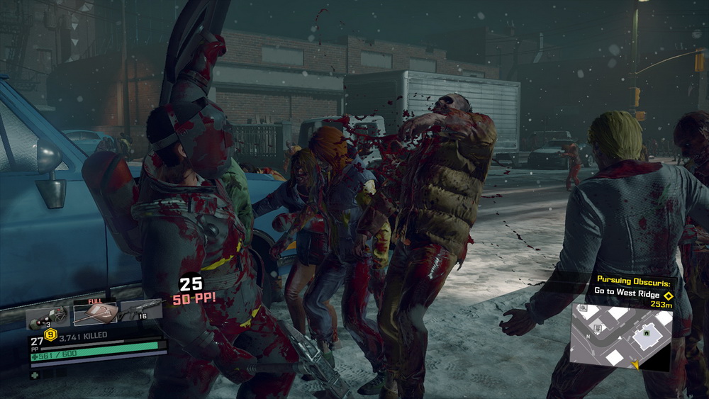 Η αναβάθμιση των ικανοτήτων του Frank με κάθε level επιστρέφει, ενώ την επιστροφή του κάνει και το σύστημα συνδυασμού διαφορετικών όπλων/οχημάτων, εφόσον έχει ανακαλυφθεί το αντίστοιχο blueprint. Το τελευταίο είναι πιο «αλλού» από ποτέ, με φονικές μηχανές που είναι όχι μόνο εξαιρετικά ικανοποιητικές στην αίσθηση, αλλά και ξεκαρδιστικές. Έχετε αναρωτηθεί ποτέ τι θα έβγαινε αν συνδυάζατε ένα χορτοκοπτικό μηχάνημα με μαχαίρια; Ένα σφυρί με χειροβομβίδες; Ένα τρακτέρ με ένα αναπηρικό καροτσάκι (!); Απ’ ότι φαίνεται η ομάδα της Capcom Vancouver τα φαντάστηκε όλα, και τα αποτελέσματα είναι σπαρταριστά, το λιγότερο. Και φυσικά, ας μη ξεχνάμε ότι όλα τα παραπάνω ο Frank μπορεί να τα κάνει φορώντας ό,τι βρει μπροστά του. Αλήθεια, το να βλέπετε τον πρωταγωνιστή να οδηγεί ένα τρίκυκλο ποδηλατάκι με λεπίδες στο μπροστινό μέρος, που φτύνει φωτιά, ντυμένος με μπότες χιονιού, δερμάτινο μπουφάν και τη μάσκα του Blanka από το Street Fighter είναι μια εικόνα που δε συναντάτε πολύ συχνά.