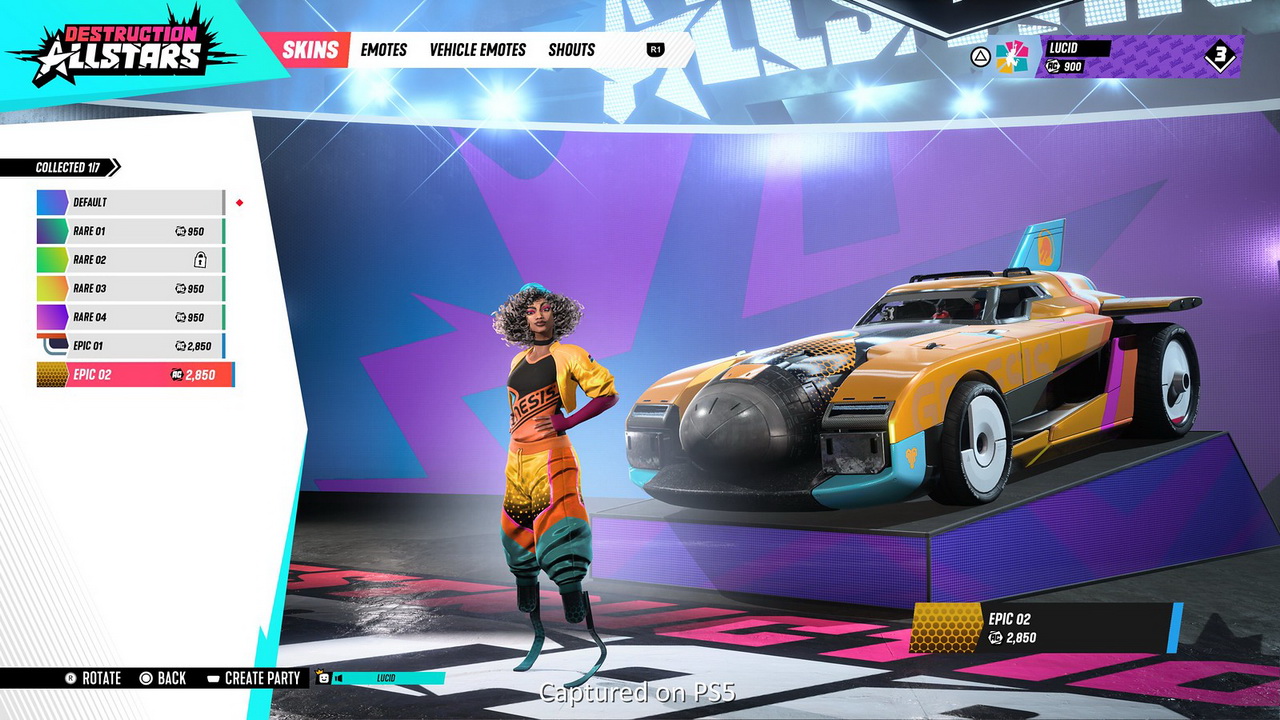 Υπάρχουν δεκαέξι καλοσχεδιαμένοι, επιλέξιμοι χαρακτήρες, ο καθένας με τη δική του προσωπικότητα και ικανότητες. Πέρα από τα τυχαία οχήματα που υπάρχουν διαθέσιμα σε κάθε αρένα, στον καθένα αντιστοιχεί το λεγόμενο αυτοκίνητο breaker, που γίνεται διαθέσιμο μόνο όταν γεμίσει ένας συγκεκριμένος μετρητής και είναι εφοδιασμένο με επιπλέον, ειδικές, λειτουργίες, που διευκολύνουν την αποστολή των παικτών. Όμως δυνάμεις τύπου breaker έχει και ο κάθε χαρακτήρας και θα σας φανούν απόλυτα χρήσιμες όταν θα πρέπει για τον οποιονδήποτε λόγο να κινηθείτε στην αρένα με τα πόδια. Η οδήγηση είναι απολαυστική. Θα μπορούσε κανείς να αφιερώσει άπλετο χρόνο να πηγαίνει πάνω κάτω στην αρένα, πατώντας το γκάζι στο τέρμα και χρησιμοποιώντας το χειρόφρενο για να κάνει στροφές 180 μοιρών. Η κίνηση των αυτοκινήτων είναι απόλυτα ομαλή χάρη, κατά ένα μεγάλο βαθμό, στον ρυθμό ανανέωσης που είναι καρφωμένος στα 60 καρέ ανά δευτερόλεπτο. Ταυτόχρονα, η κάμερα δεν δημιουργεί προβλήματα και ακολουθεί πιστά την πορεία του οχήματος που οδηγείτε. Βεβαίως, η όλη μαγεία είναι όταν κατορθώσετε να εμβολίσετε κάποιο αντίπαλο όχημα και χάρη στις λειτουργίες του DualSense δεν αποκλείεται να νιώσετε πως όντως βρίσκεστε στην αρένα, πίσω από τιμόνι του οδηγού. Υπάρχει όμως και ένα αλλά. Οι αρένες είναι έξυπνα δομημένες, γεμάτες προκλήσεις και παγίδες που θα κάνουν το αυτοκίνητό σας φέτες πριν καταλάβετε τι έχει συμβεί. Όμως, είναι τεράστιες σε σχέση με τον αριθμό των αυτοκινήτων. Έχοντας διανύσει μεγάλες αποστάσεις, πολλές φορές θα αναρωτιέστε που χάθηκαν οι αντίπαλοι. Οι δρόμοι της ομάδας ανάπτυξης είναι δύο. Είτε να συρρικνώσει τις αρένες, είτε να διπλασιάσει των αριθμό των παικτών. Το τελευταίο ίσως δεν είναι ανέφικτο στο εγγύς μέλλον, μιας και σημαίνει διπλασιασμό των χαρακτήρων. Ένα μικρό παράπονο, αν μπορεί να χαρακτηριστεί έτσι, είναι πως δεν υπάρχει τρόπος να γνωρίζεις τι συμβαίνει πίσω σου, πέρα από κάποιες οπτικές ενδείξεις, που όμως δεν παρέχουν πλήρη εικόνα. Από την άλλη, αυτός είναι ένας παράγοντας που αυξάνει την αδρεναλίνη, μέσω της αγωνίας για το άγνωστο.