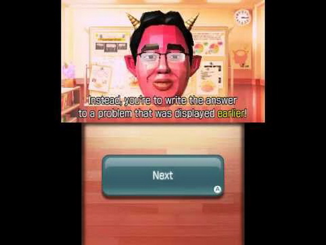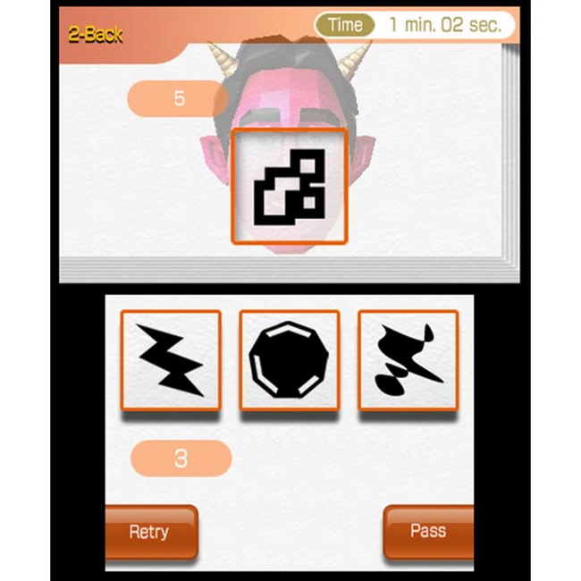 Και τα οκτώ mini-games που περιλαμβάνονται εδώ πάντως βασίζονται στο ίδιο μοτίβο: για τα επόμενα πέντε λεπτά δοκιμάζεστε κατ’ επανάληψη μόνο στη δραστηριότητα που έχετε επιλέξει. Κάθε φορά όμως που την ολοκληρώνετε, αξιολογήστε και αντίστοιχα προσαρμόζεται η δυσκολία προτού ξαναξεκινήσετε. Αν το ποσοστό των προβλέψεών σας είναι υψηλό (85% και άνω ή 2 στα 2 προβλήματα σωστά, ανάλογα με το παιχνίδι) ο Dr. Kawashima ανεβάζει το επίπεδο πρόκλησης. Αν είναι χαμηλό (65% και κάτω, 0 στα 2 σωστά), το επόμενο παιχνίδι γίνεται πιο εύκολο, ενώ αν βρίσκεστε κάπου ανάμεσα παραμένετε στο τρέχον επίπεδο δυσκολίας. Είναι ένα σύστημα που πραγματικά θα σας φέρει στα όρια σας αφού απευθύνεται αποκλειστικά σε εσάς. Δεν θα σας κάνει να νιώσετε ποτέ αυτοπεποίθηση με τις επιδόσεις σας -όσο καλύτερα τα πάτε, τόσο πιο δύσκολα προβλήματα θα σας θέτει-. Αντίστοιχα, αν ανιχνεύσει πολλές αστοχίες δεν θα σας πιέσει παραπάνω και θα σας δώσει τον απαραίτητο αέρα. Το αποτέλεσμα είναι πως όσο περισσότερο εξασκείστε, τόσο πιο ορατή θα γίνεται η βελτίωση της μνήμης και της αυτοσυγκέντρωσης σας. Η βασική μας ένσταση για το Devilish Training βρίσκεται στον απελπιστικά αργό ρυθμό που ξεκλειδώνουν οι δραστηριότητες. Ο τίτλος απαιτεί από εσάς να δώσετε το “παρών” για 40 συνεχείς ημέρες αν θέλετε να τις ξεκλειδώσετε όλες. Επίσης σημειώστε ότι υπάρχει περιορισμένος έλεγχος στα παιχνίδια: τα περισσότερα mini-games δεν μπορούν καν να επαναληφθούν και θα πρέπει να περιμένετε το αύριο για να δοκιμαστείτε. Ο Dr. Kawashima δεν θέλει με τίποτε να το παρακάνετε και να…«κάψετε» το μυαλό σας.